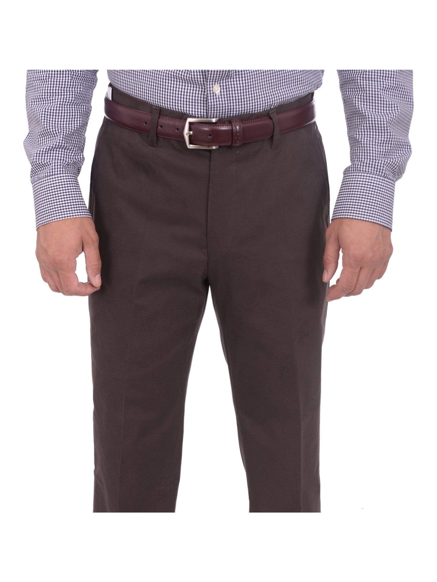 These flat front men's casual from Aldo Valentini feature a stylish slim fit. Made with a quality 100% cotton fabric, and in a versatile brown color, these will quickly become your go-to pair of casual pants. This pair will match countless dress shirts and sport coats, offering your wardrobe an updated look. Inseam is , allowing you to have your tailor hem them to your exact specifications.