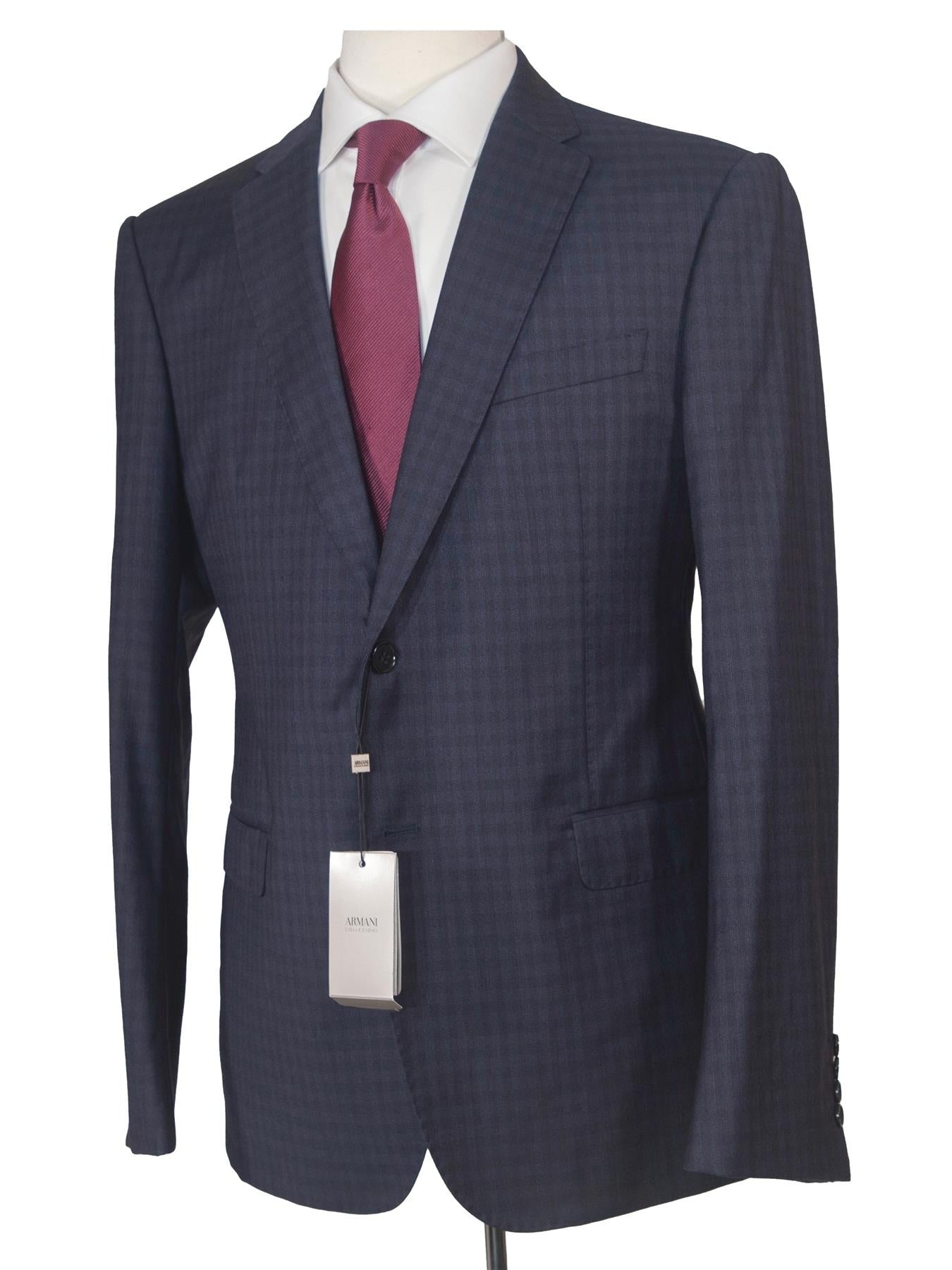 Armani Collezioni M-Line Mens 42R Navy Blue Check 2 Piece Suit