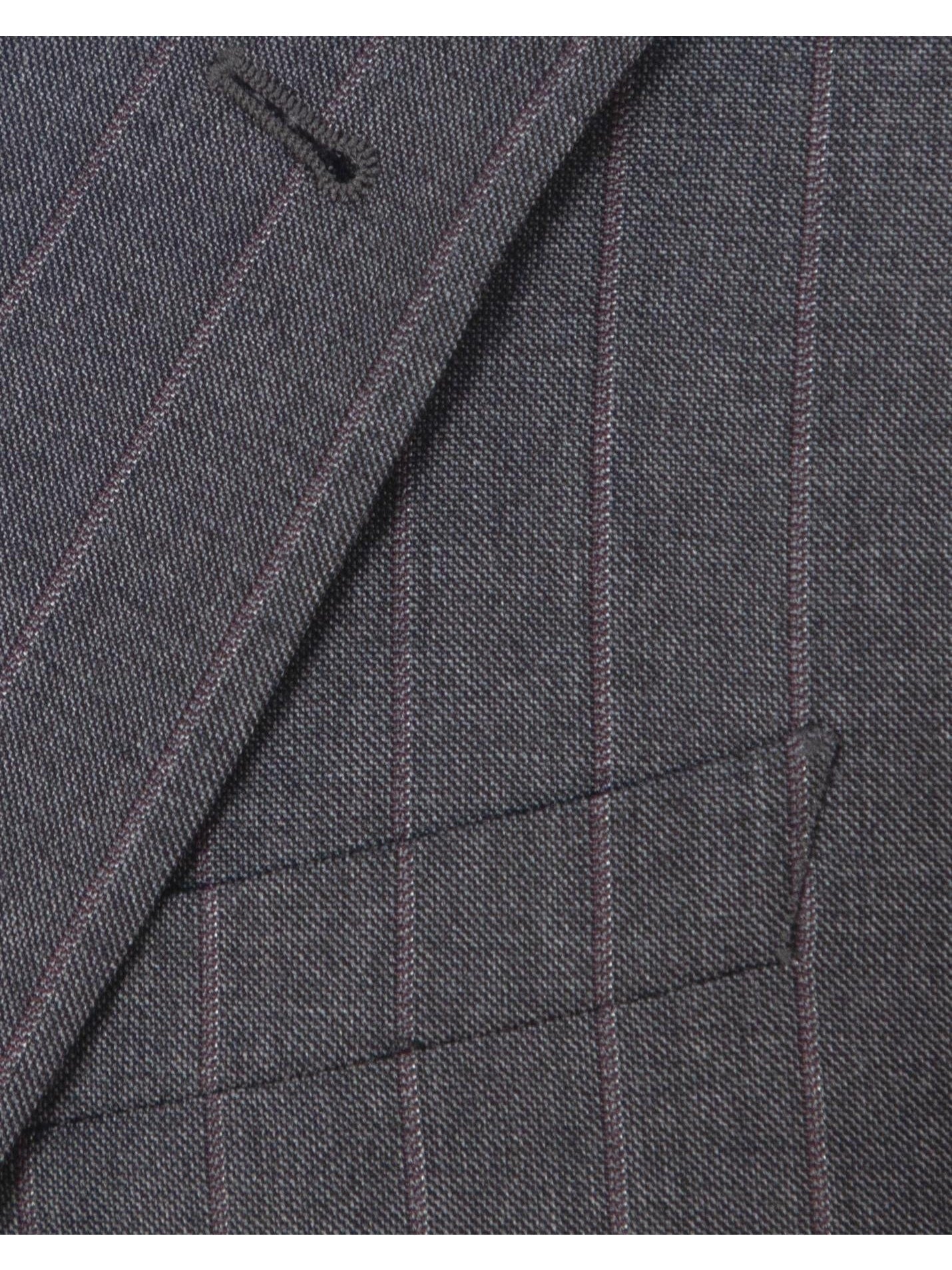 This luxury slim fit gray striped wool blend suit features half-canvassed construction and fine tailoring. The breathable and high-end wool blend Italian fabric drapes elegantly across the body, the quality readily apparent. The slim fit is modern and sharp. It’s the perfect suit for wedding parties and groomsmen, as well as for year-round business wear. With its Italian fabric and high-end tailoring techniques, this suit is the picture of effortless style.