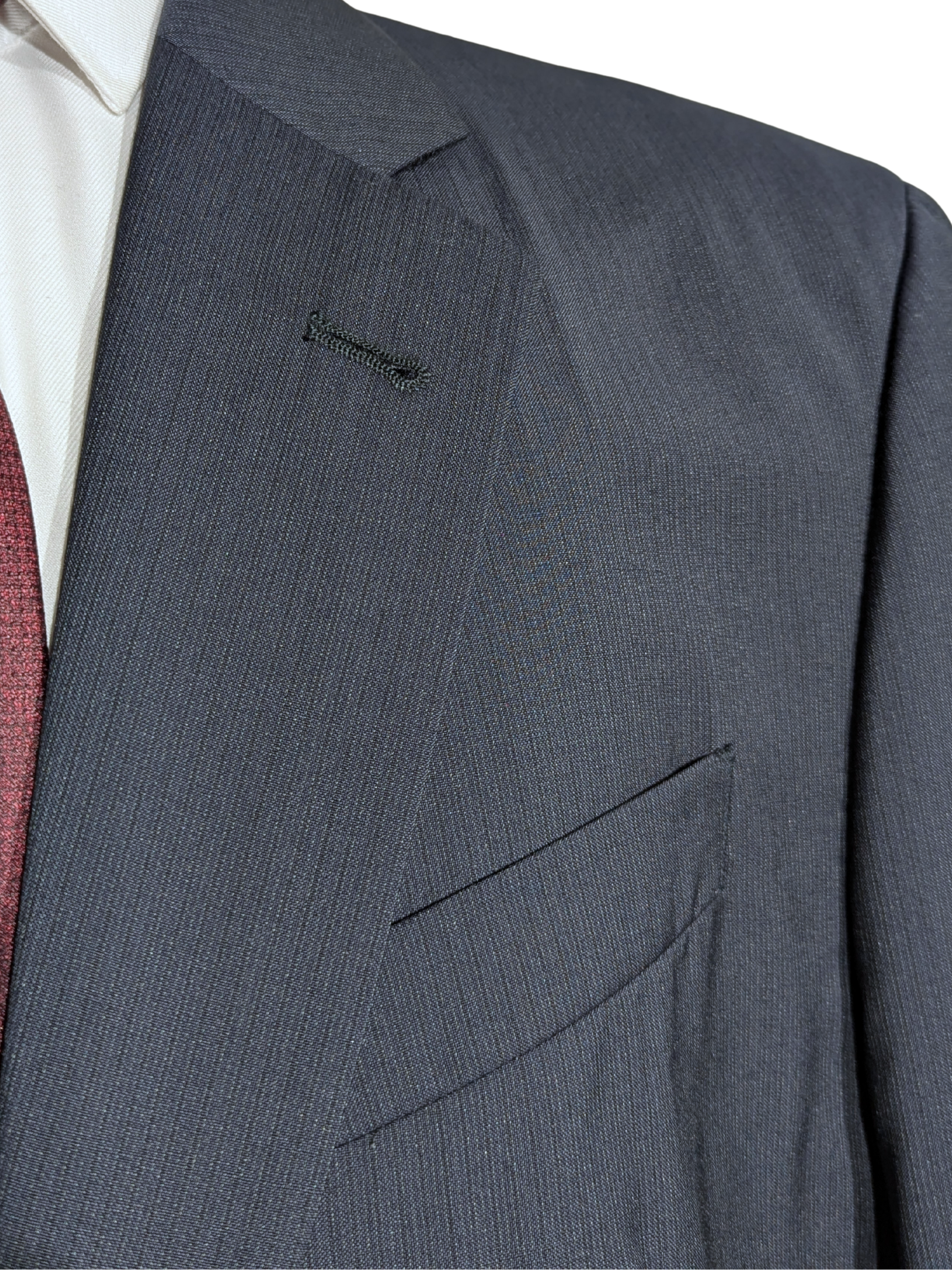 Armani Collezioni Navy Tonal Pinstriped Notch Lapel Wool 2-Button Suit - 44R