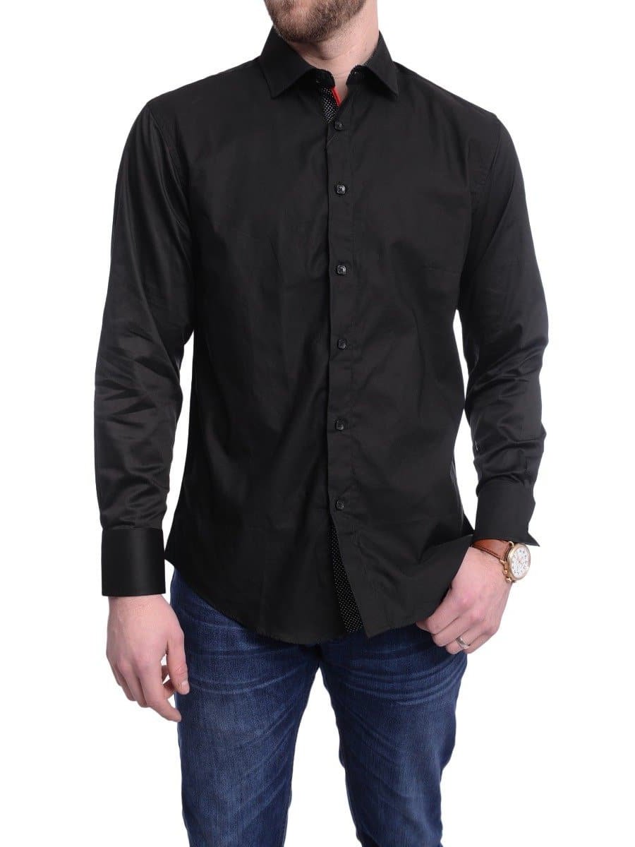 Bespoke Trim Fit Solid Black Spread Collar Cotton Casual Dress Shirt
