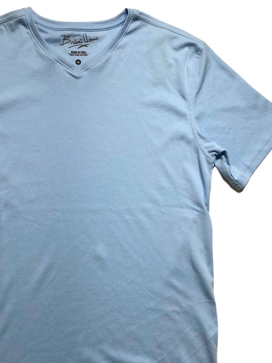 Briani Uomo Men’s Sky Blue Short Sleeve 100% Pima Cotton V-Neck T-Shirt