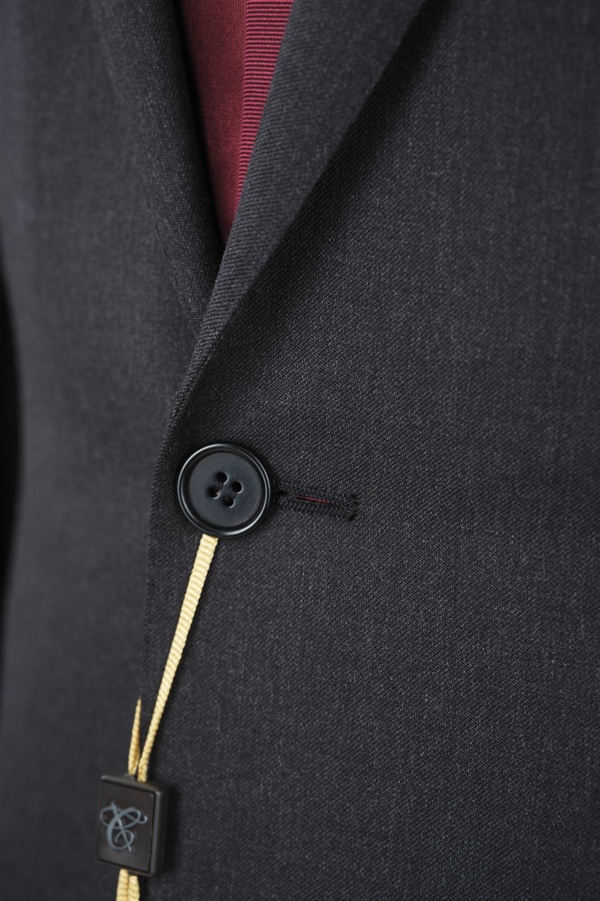 Step into timeless elegance with this impeccably tailored, full-canvassed Charcoal gray 100% wool suit. Crafted with signature Italian precision, this sophisticated masterpiece effortlessly exudes refined taste, making a lasting impression in any special occasion or business setting.