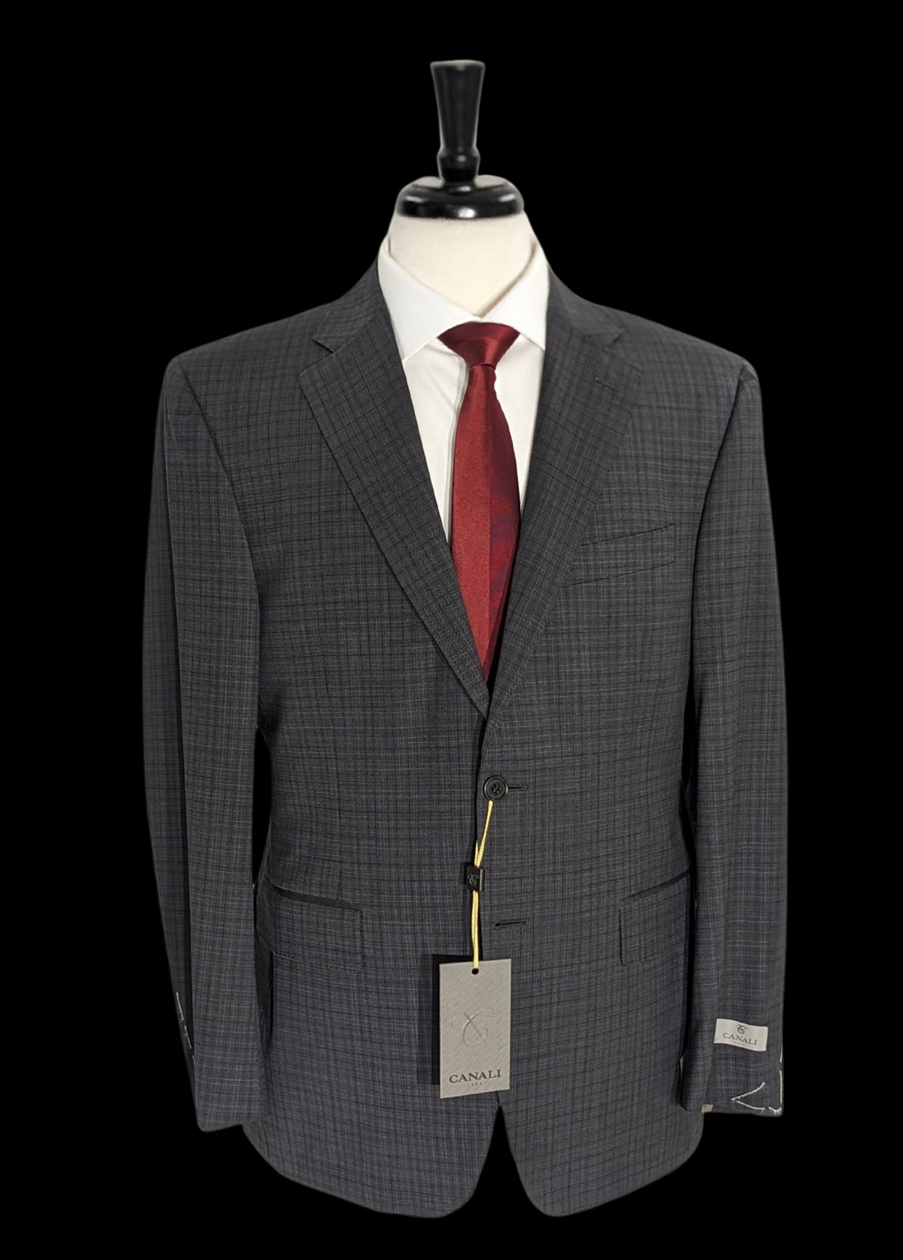Canali 1934 Men's Gray Fine Check Pattern Classic Fit 100% Wool Suit 40R