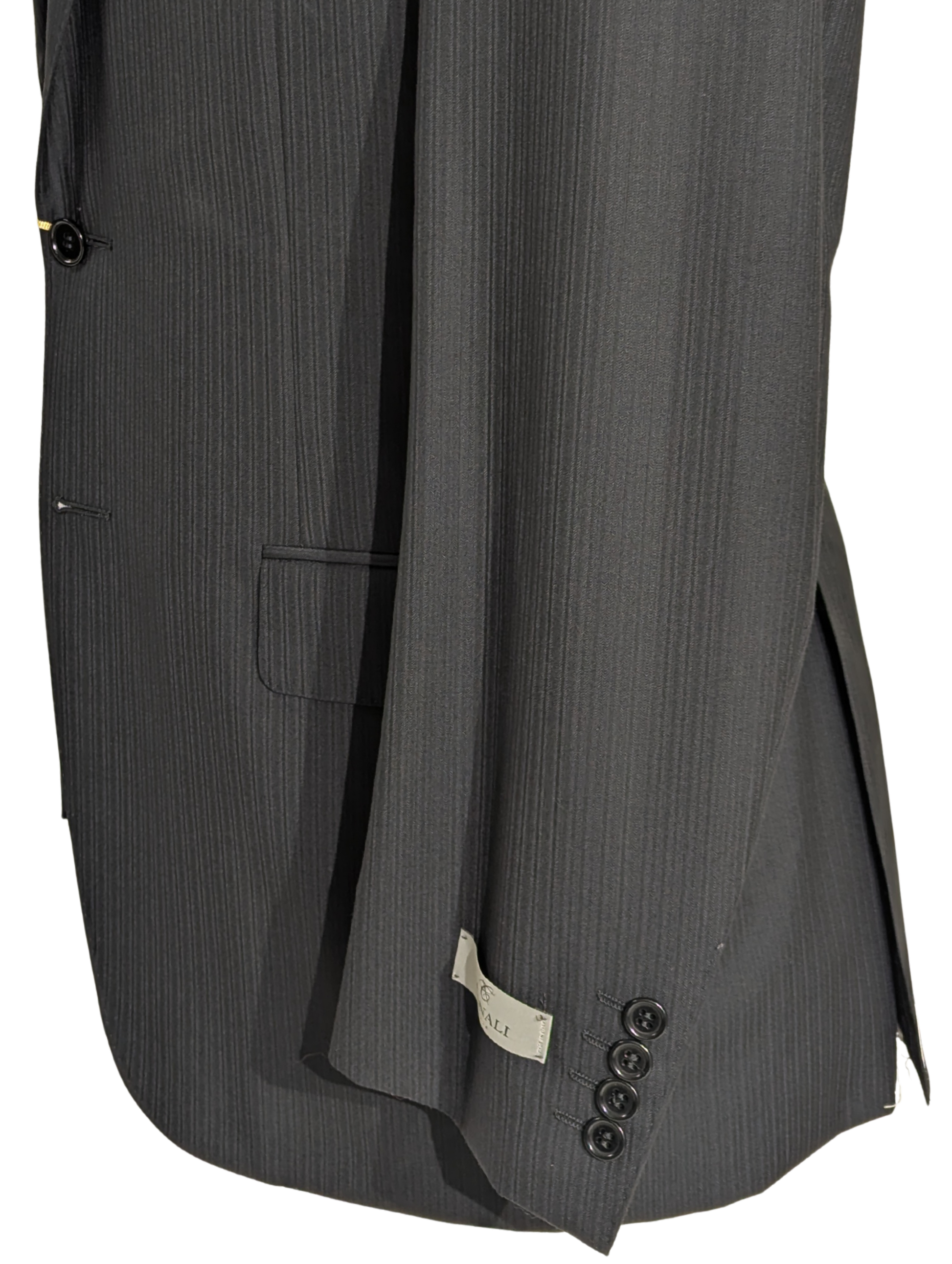 Canali Black Tonal Striped 100% Wool Suit 38R
