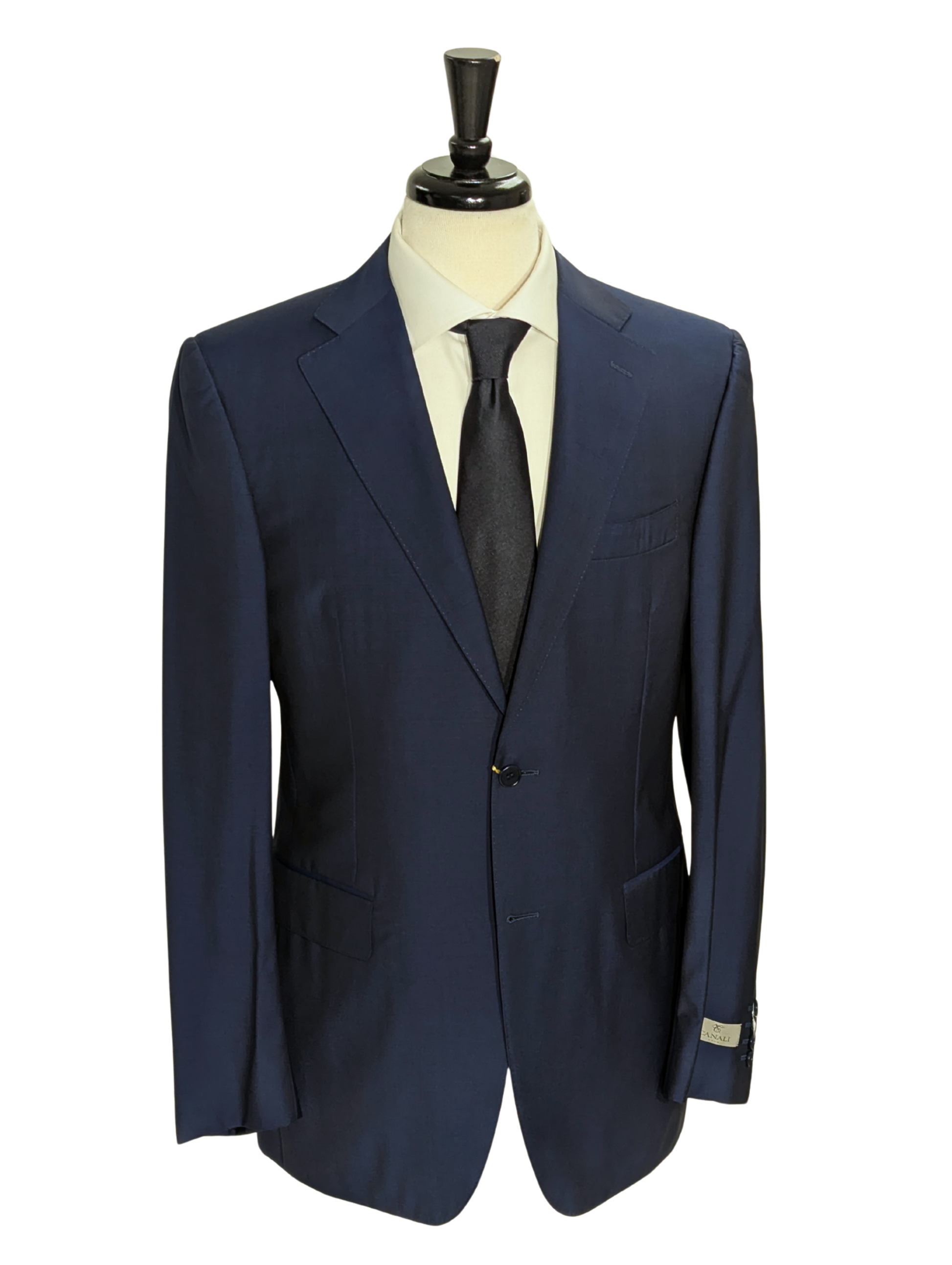 Canali Blue Sharkskin 100% Wool Suit 40L