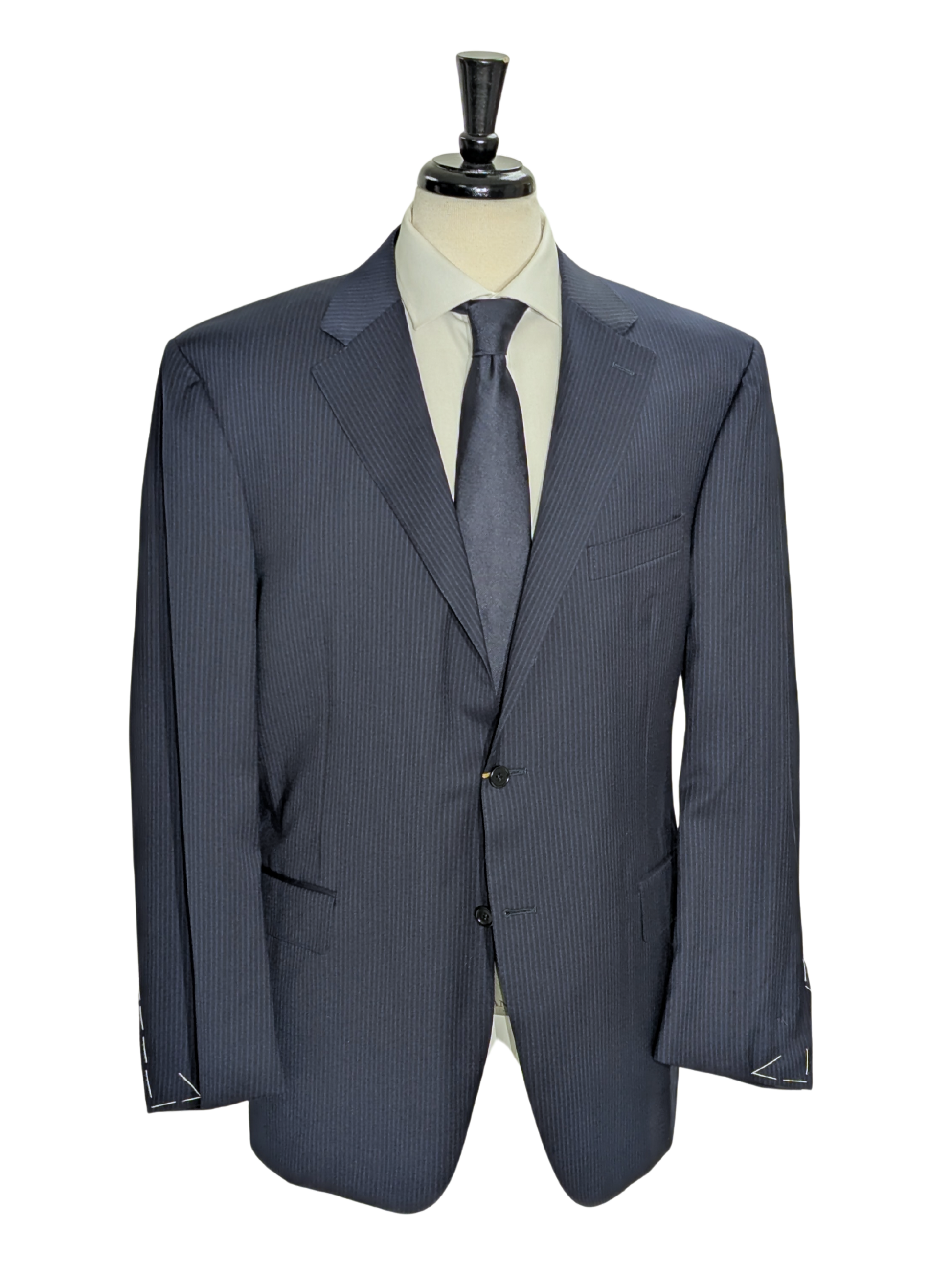 Canali Navy Pinstriped 100% Wool 2 Button Suit 48R