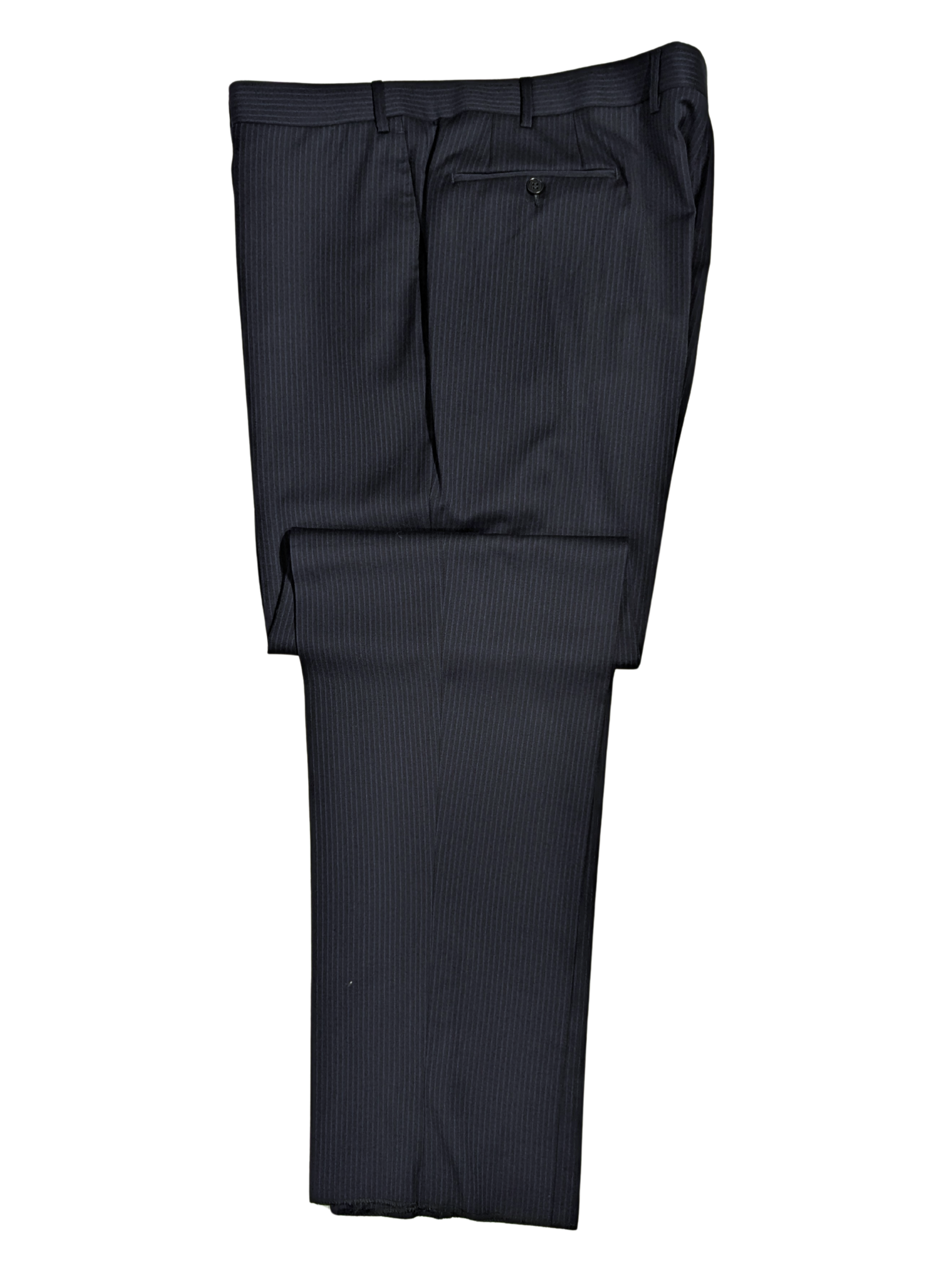 This Canali navy pinstripe suit captures the essence of refined Italian tailoring. Crafted from luxurious 100% pure wool, the fabric offers a smooth, breathable finish and an elegant drape that moves with ease. The classic navy base is accented with subtle pinstripes, adding depth and visual interest without overpowering the look. The jacket features a timeless 2-button front, notch lapels, and lightly structured shoulders for a clean, authoritative silhouette. Dual side vents ensure comfort and mobility, while the matching flat-front trousers deliver a modern, streamlined fit. Fully lined and finished with meticulous attention to detail, this Canali suit is an essential for the gentleman who values sophistication, quality, and enduring style.