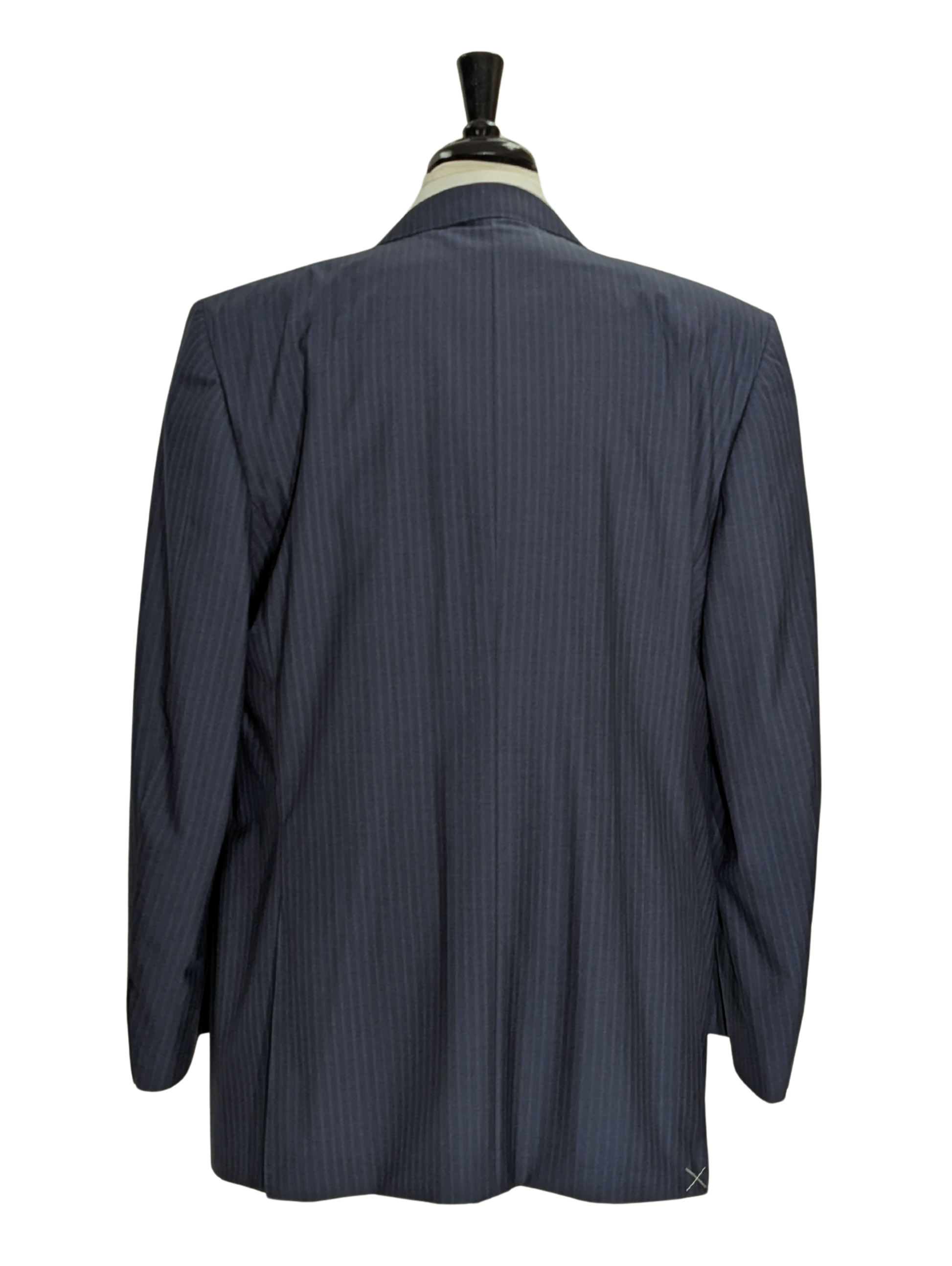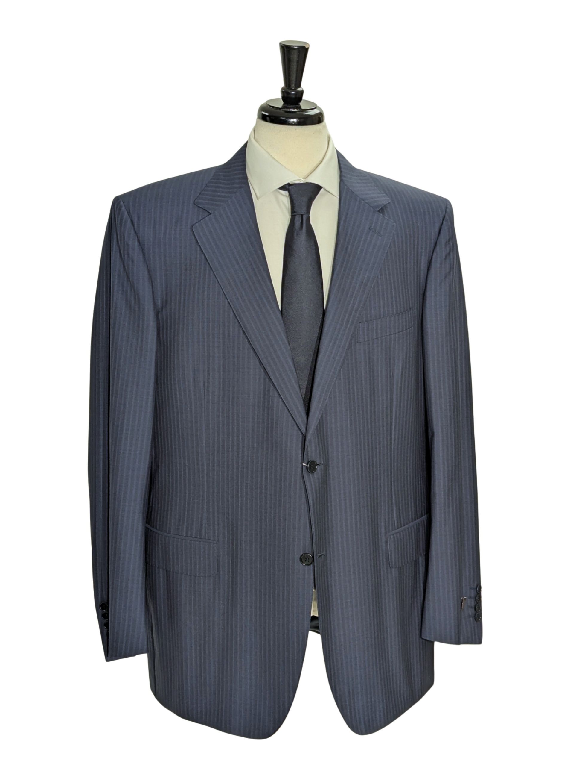 Canali Blue Tonal Pinstriped 100% Wool Suit 48L