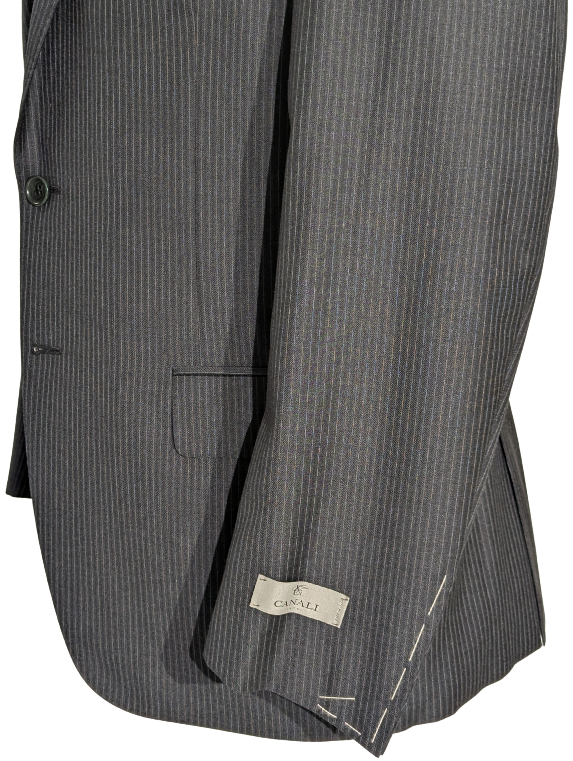 Canali Charcoal Pinstripe 100% Wool Suit 38S