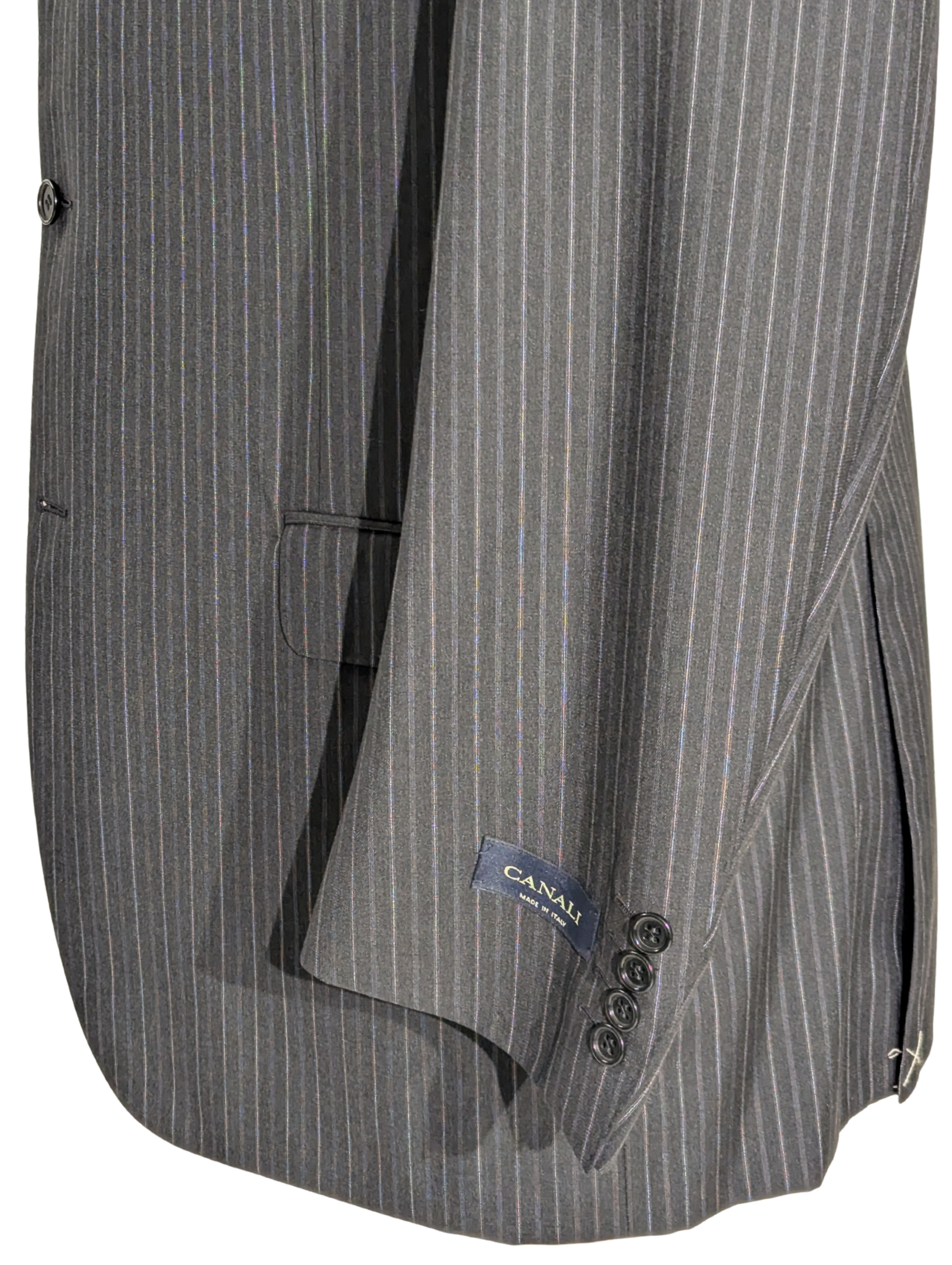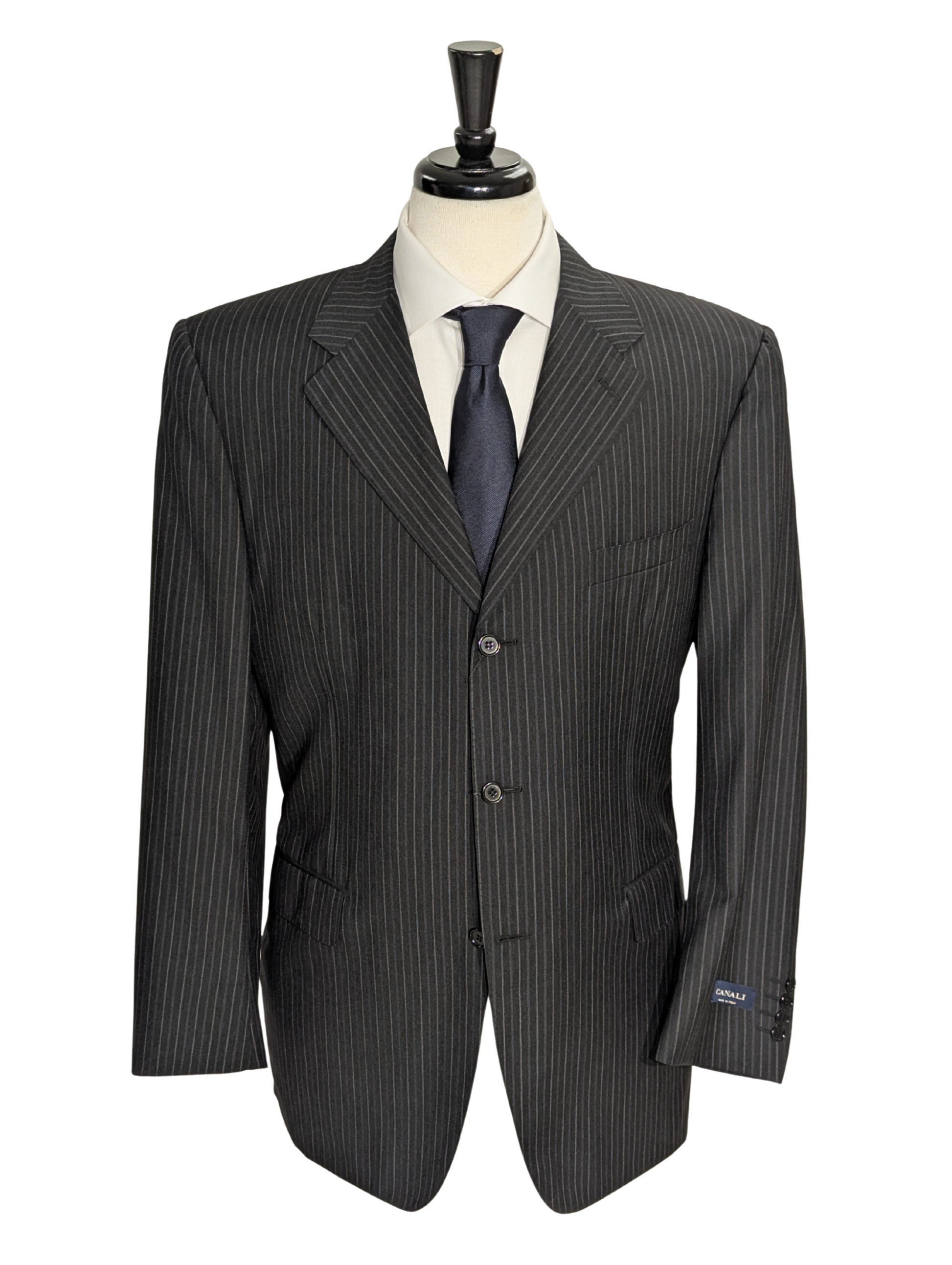 Canali Charcoal Pinstripe 3-Button 100% Wool Suit 46R