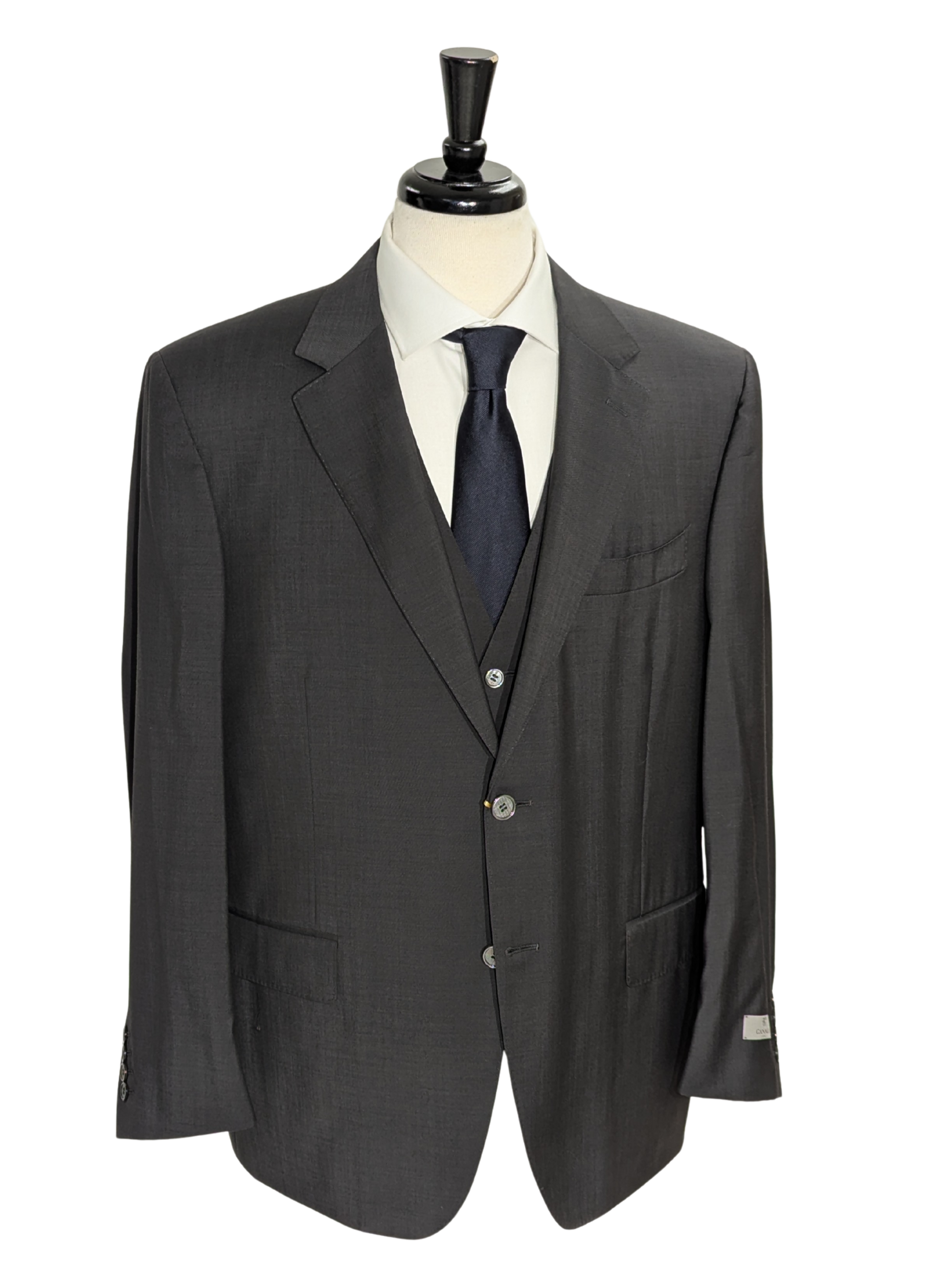 Canali Solid Gray 3-Piece 100% Wool Suit 44S