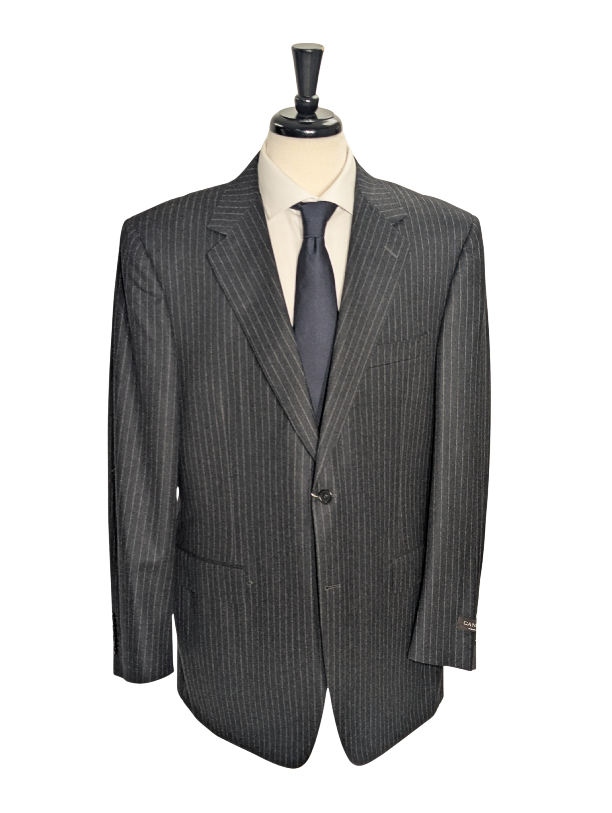 Canali Charcoal Pinstriped 100% Wool Suit 46R