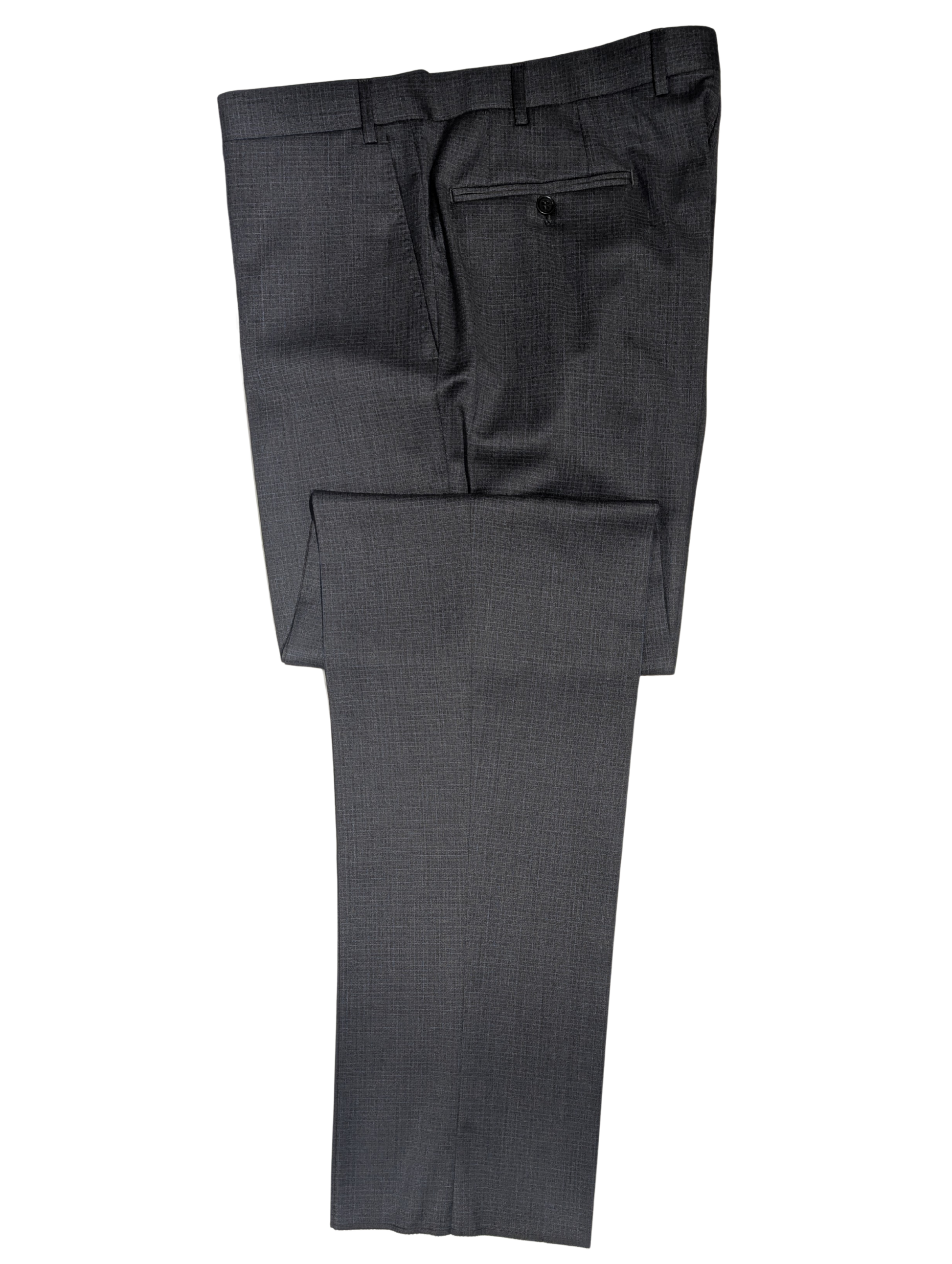 The fully-canvassed construction ensures long-lasting shape and structure, while the full lining and dual side vents provide comfort and mobility. Finished with notch lapels, a two-button front, and flat-front trousers, this suit delivers a clean, tailored silhouette with timeless appeal. A sharp, sophisticated piece from one of Italy’s most respected tailoring houses.