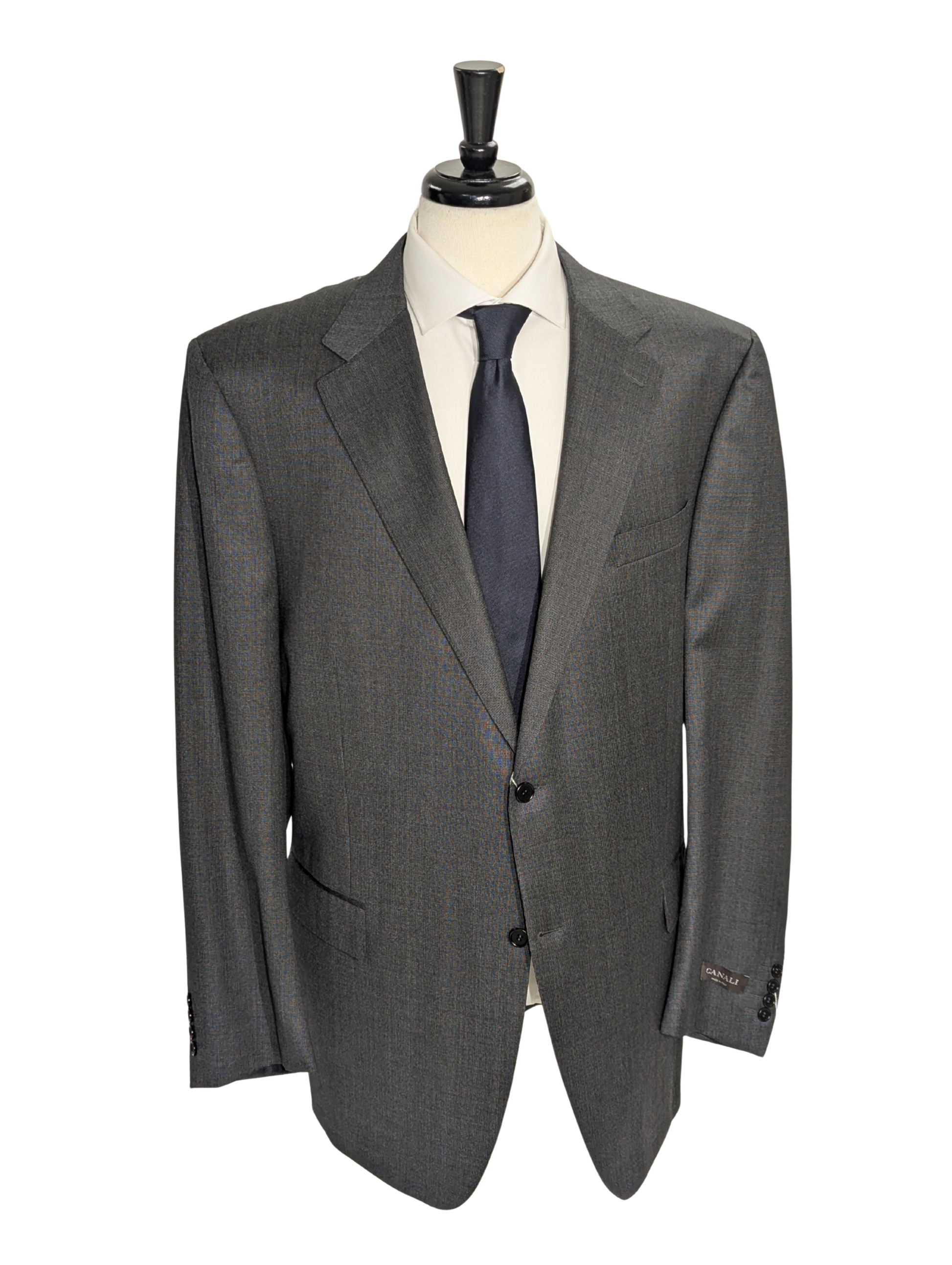 This Canali gray nailhead suit exemplifies timeless Italian tailoring with understated texture and modern elegance. Woven from 100% wool, the nailhead fabric features a fine, dot-like pattern that adds depth and sophistication to the classic gray hue. Ideal for business or formal occasions, the suit is fully canvassed for superior structure, shape retention, and drape. The jacket includes a two-button front, notch lapels, dual side vents, and full lining for comfort and mobility. Paired with flat-front trousers, this ensemble offers a clean, tailored silhouette with exceptional craftsmanship throughout. A refined essential for the discerning wardrobe.