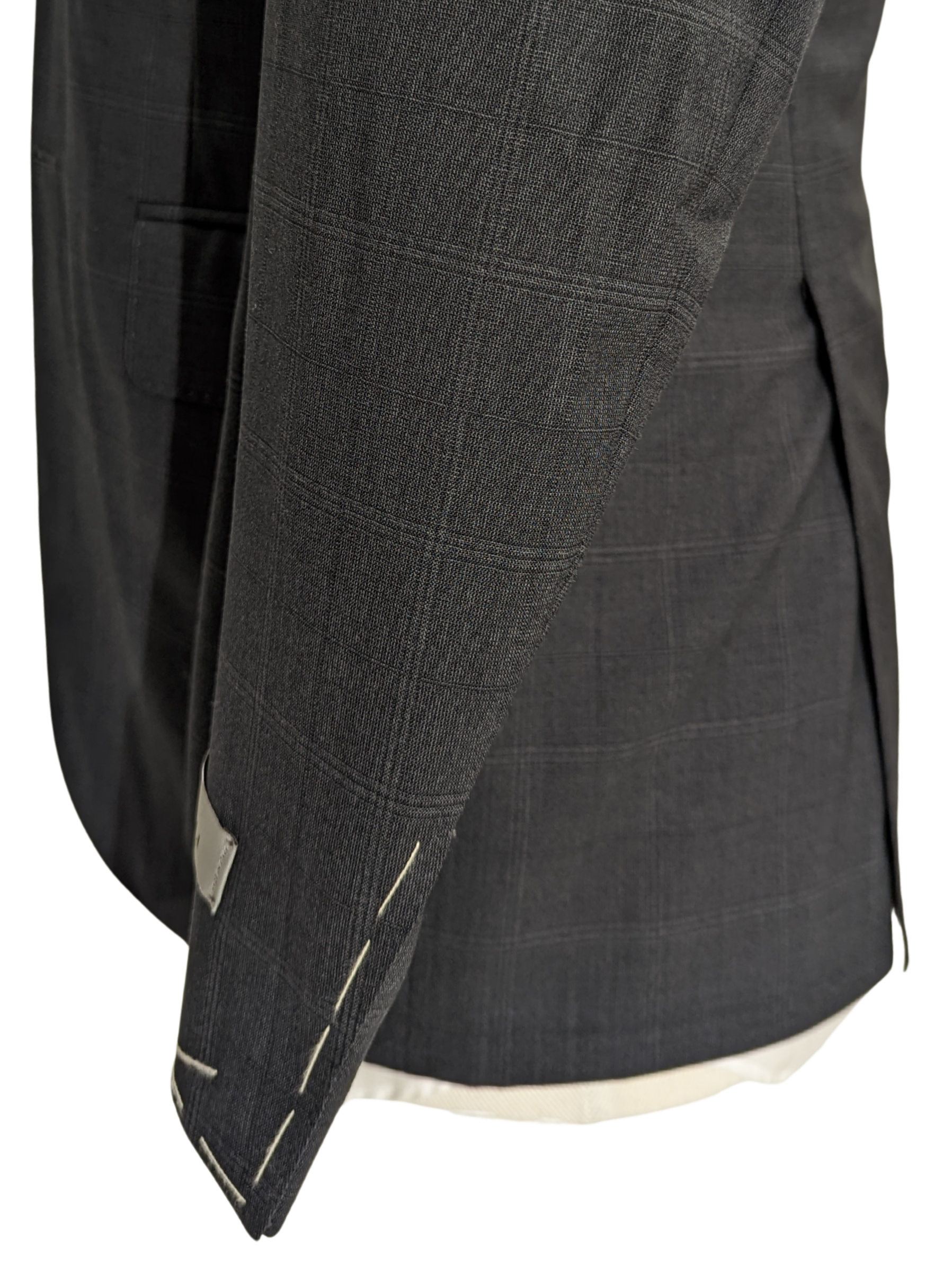 Canali Men's Charcoal Windowpane 100% Wool Suit 34S