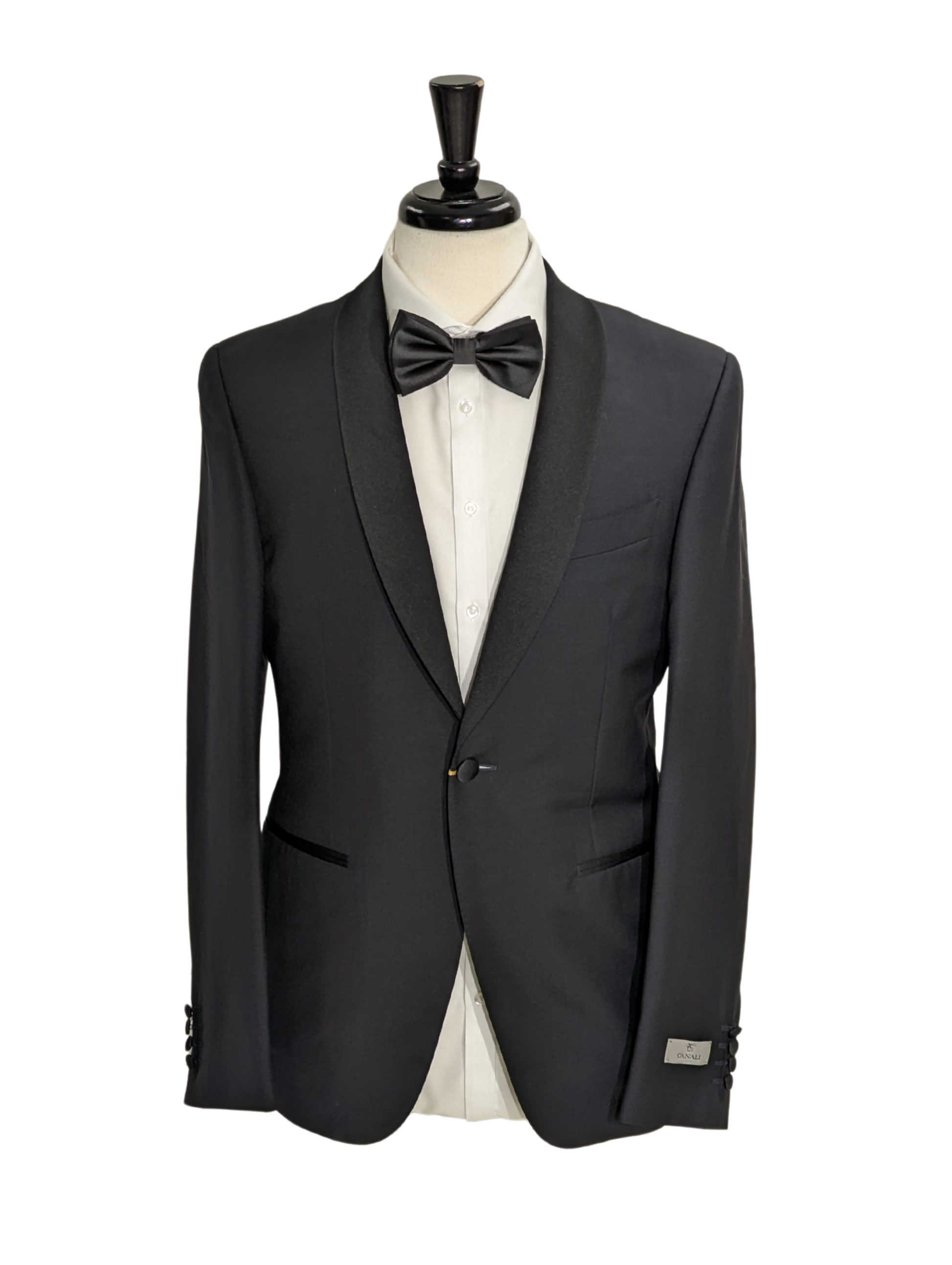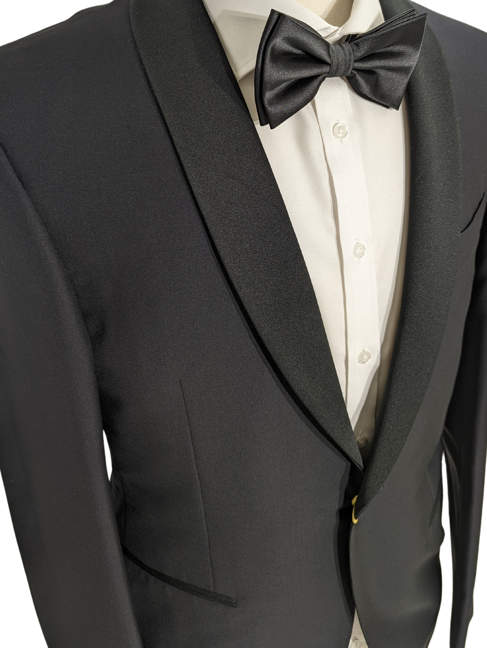 - Satin shawl lapel.