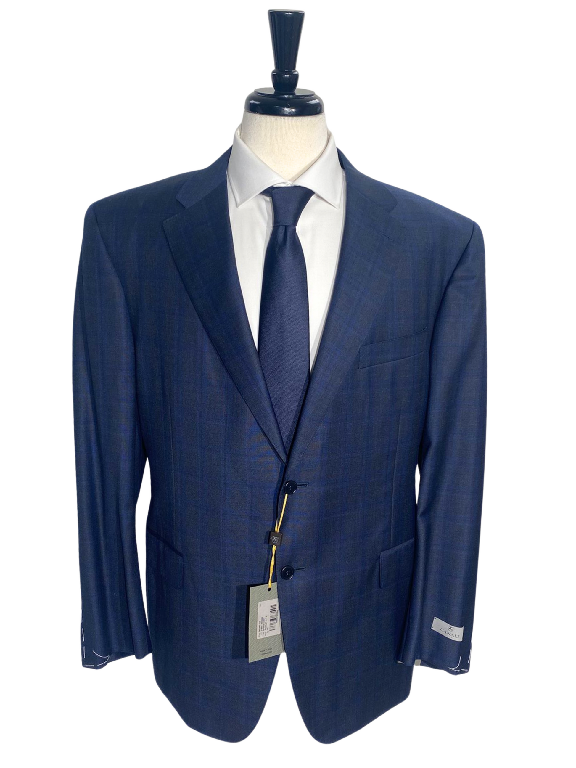 Canali Navy Blue Plaid Notch Lapel Classic Fit 100% Wool 2 Button Suit 44L
