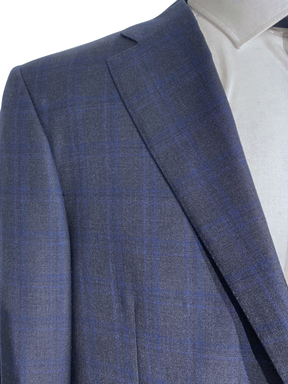 Canali Navy Blue Plaid Notch Lapel Classic Fit 100% Wool 2 Button Suit 48L