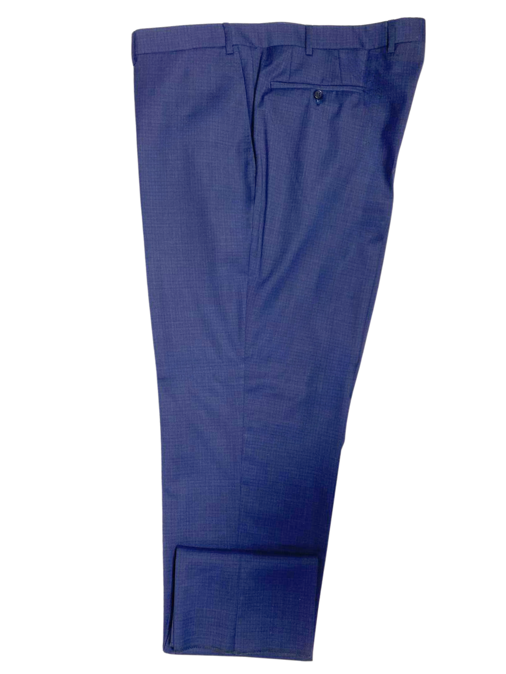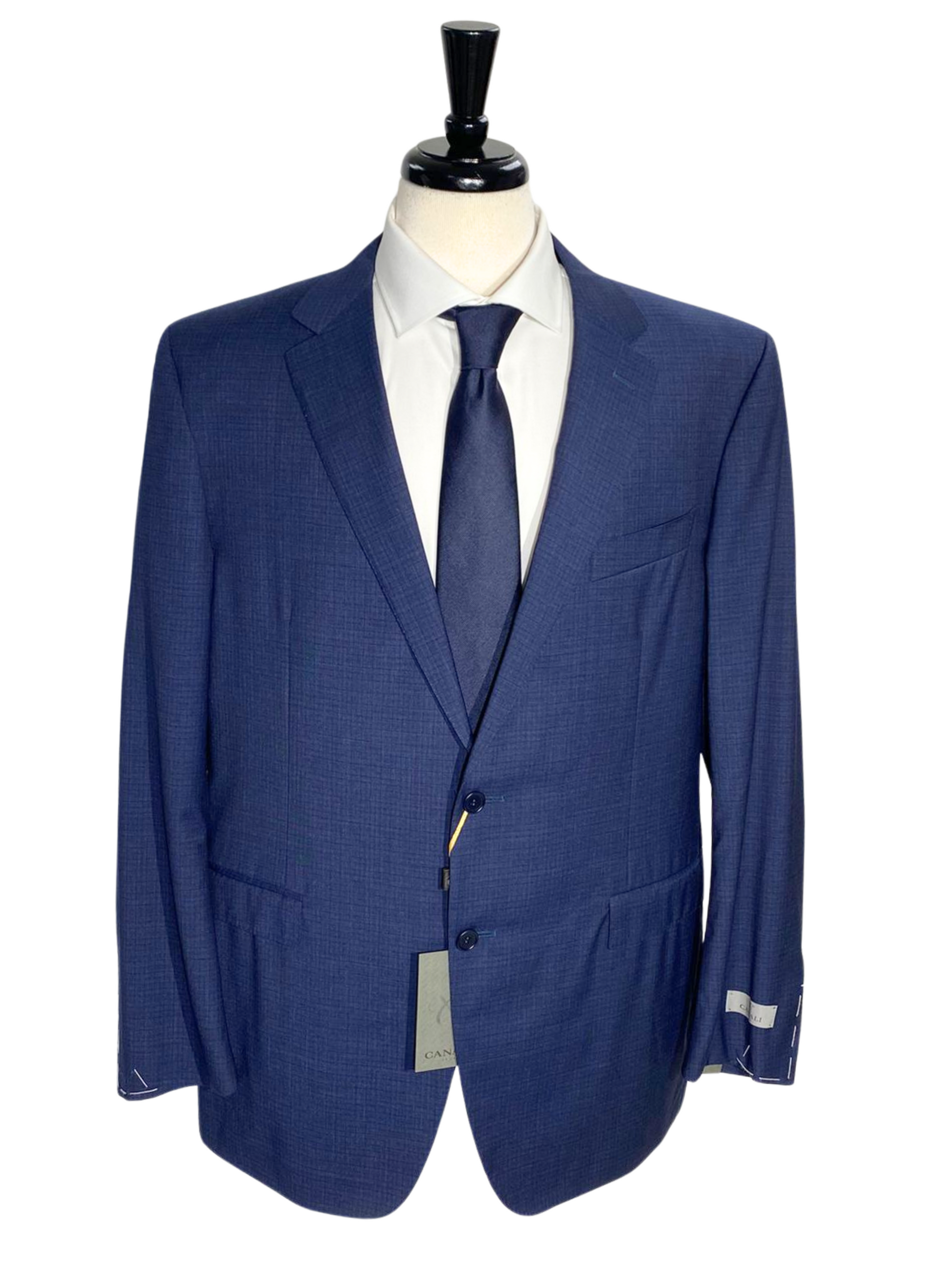 This Canali navy blue tonal plaid suit is crafted from 100% wool. It features a notch lapel, two-button front, and side vents for comfort and mobility. The tonal plaid pattern adds depth without overpowering, making it ideal for both business and formal wear. This suit reflects timeless Italian tailoring.