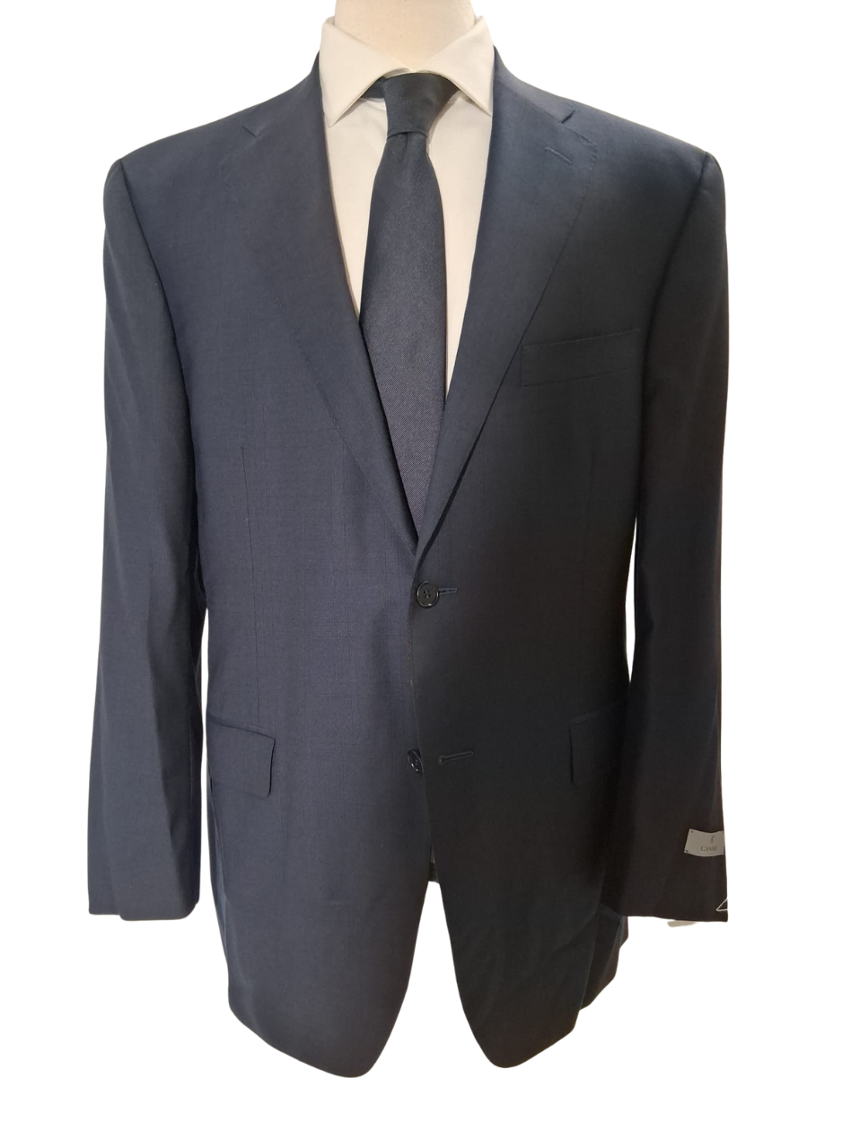 Canali Navy Blue Windowpane 100% Wool 2 Button Suit 44R