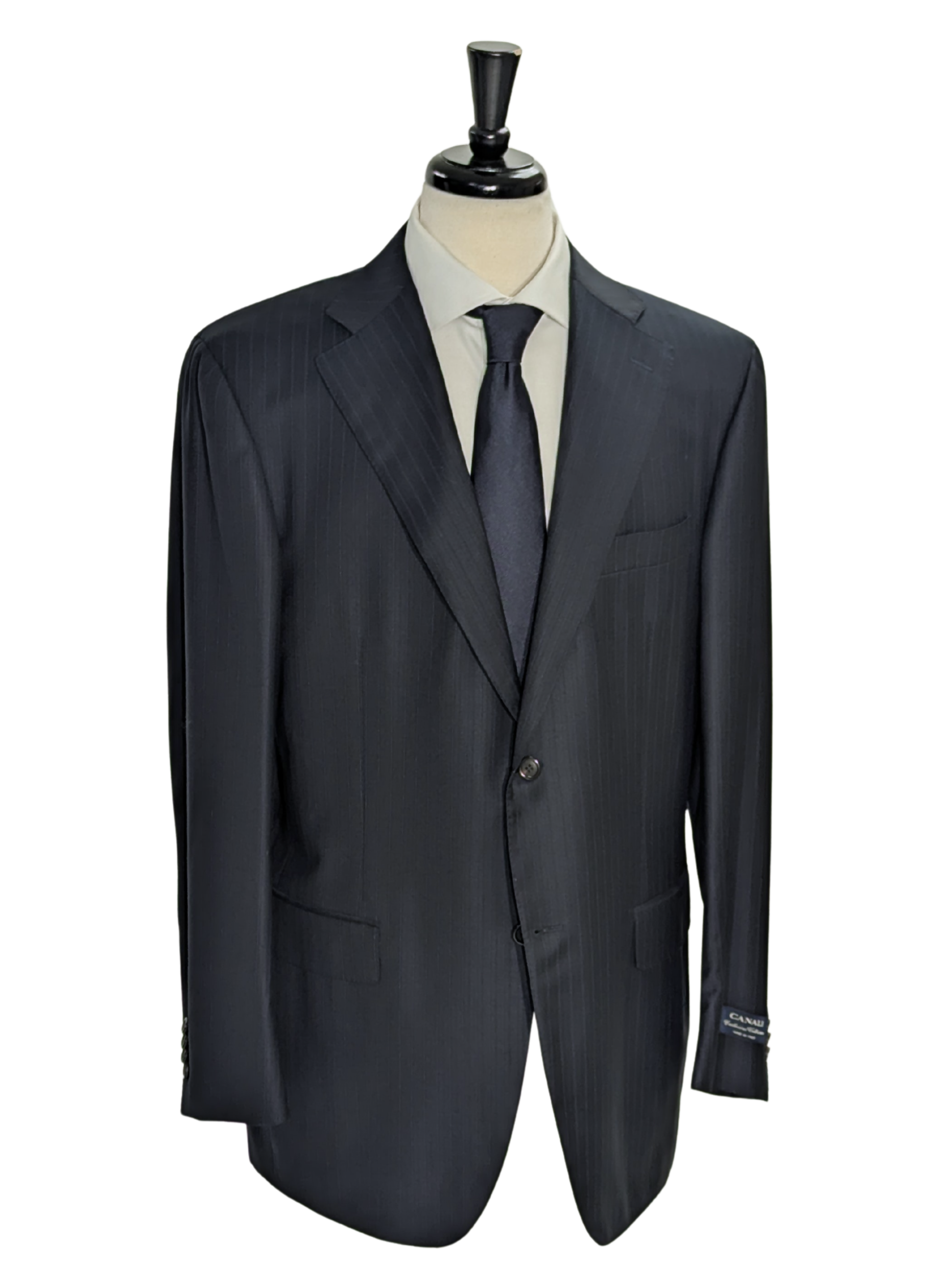 Canali Navy Pinstriped 100% Wool Suit 44R