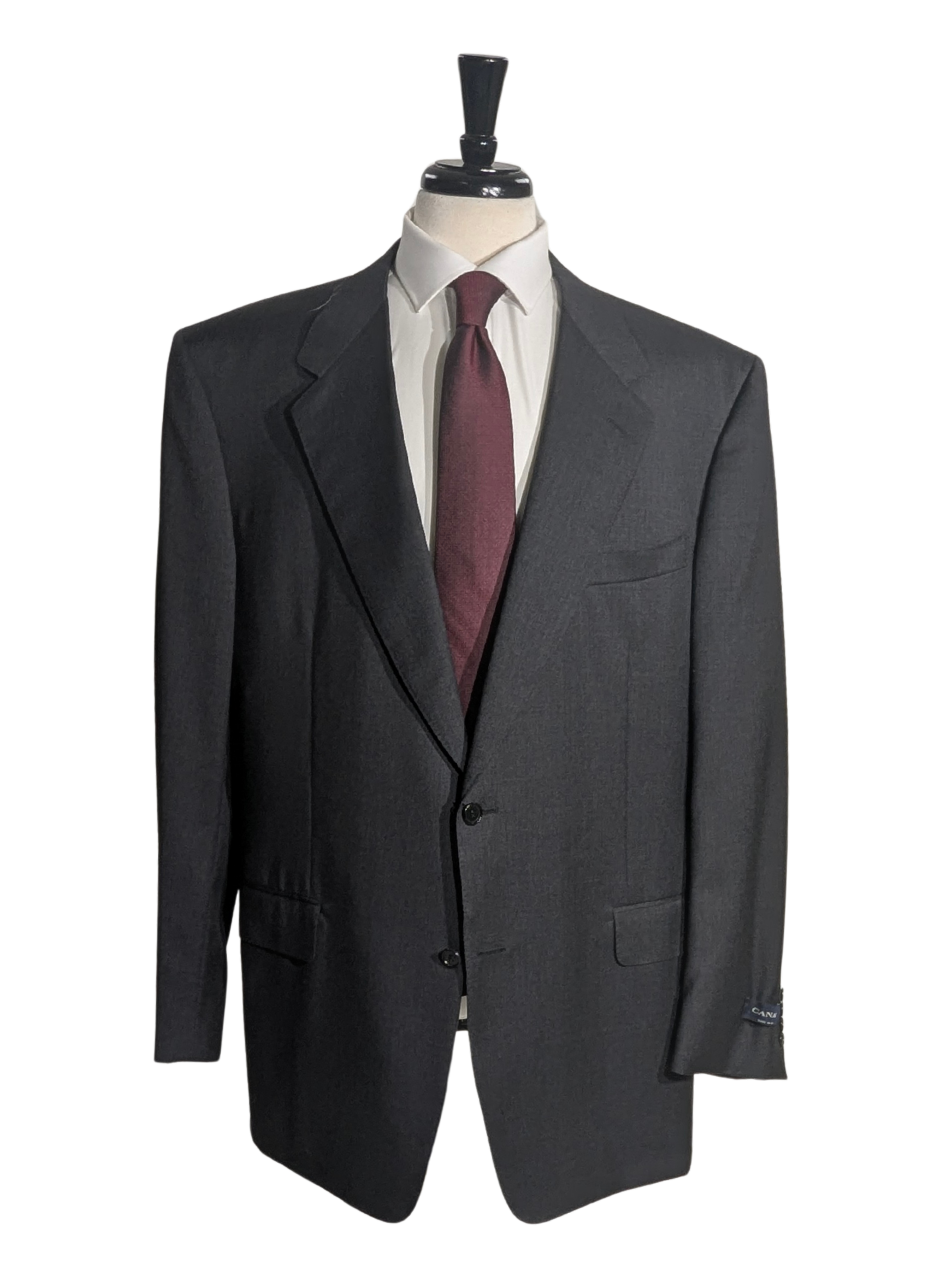 Canali Solid Charcoal 100% Wool 2 Button Suit 46L