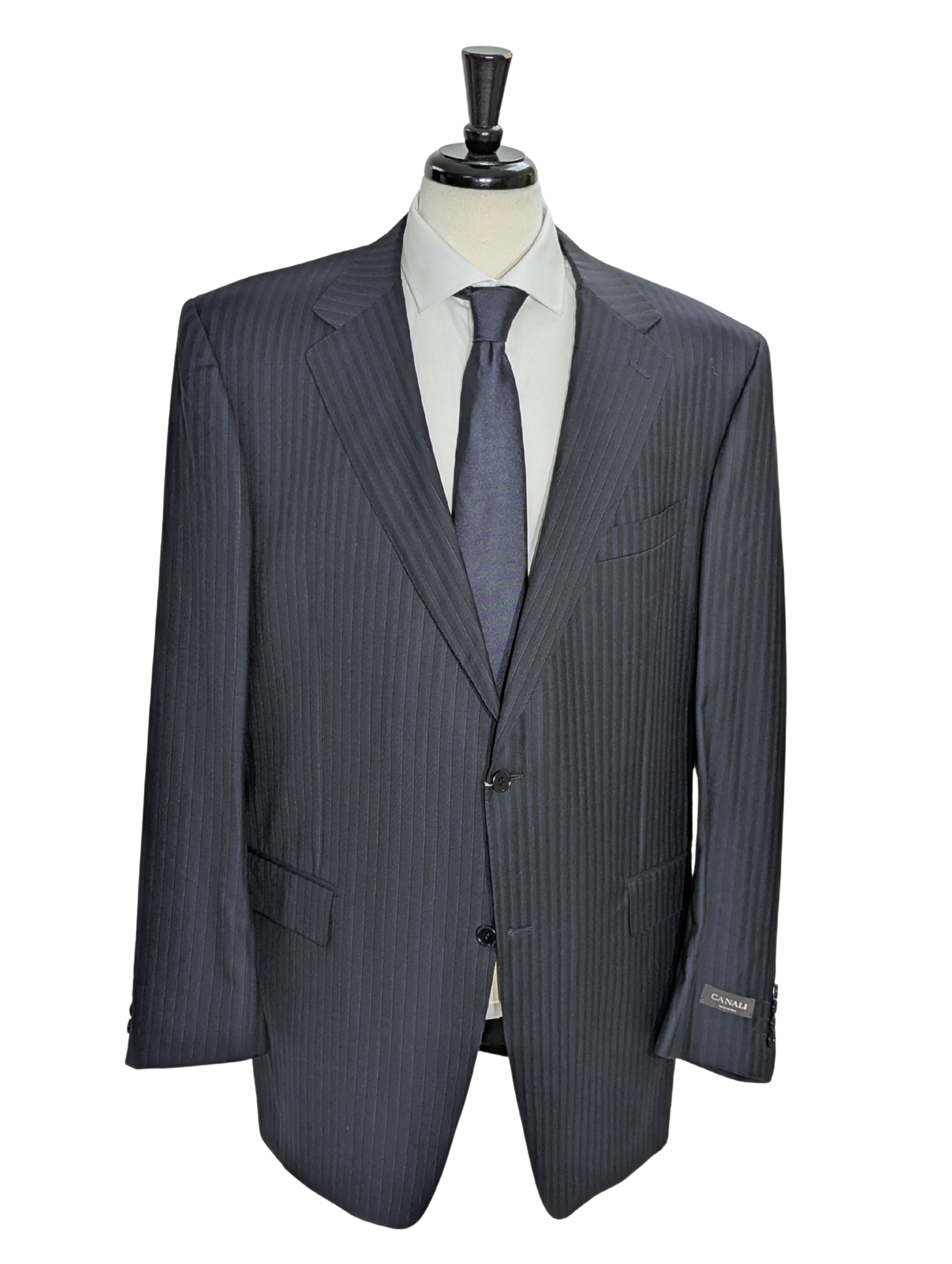 Canali Navy Pinstriped 100% Wool 2 Button Suit 52L