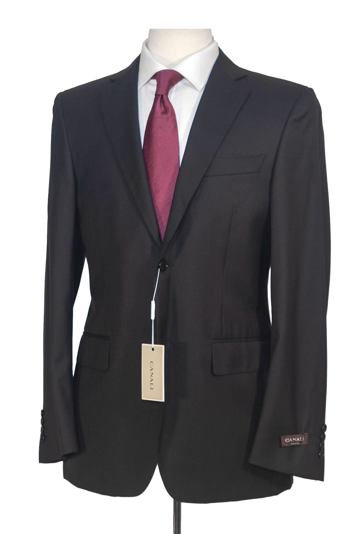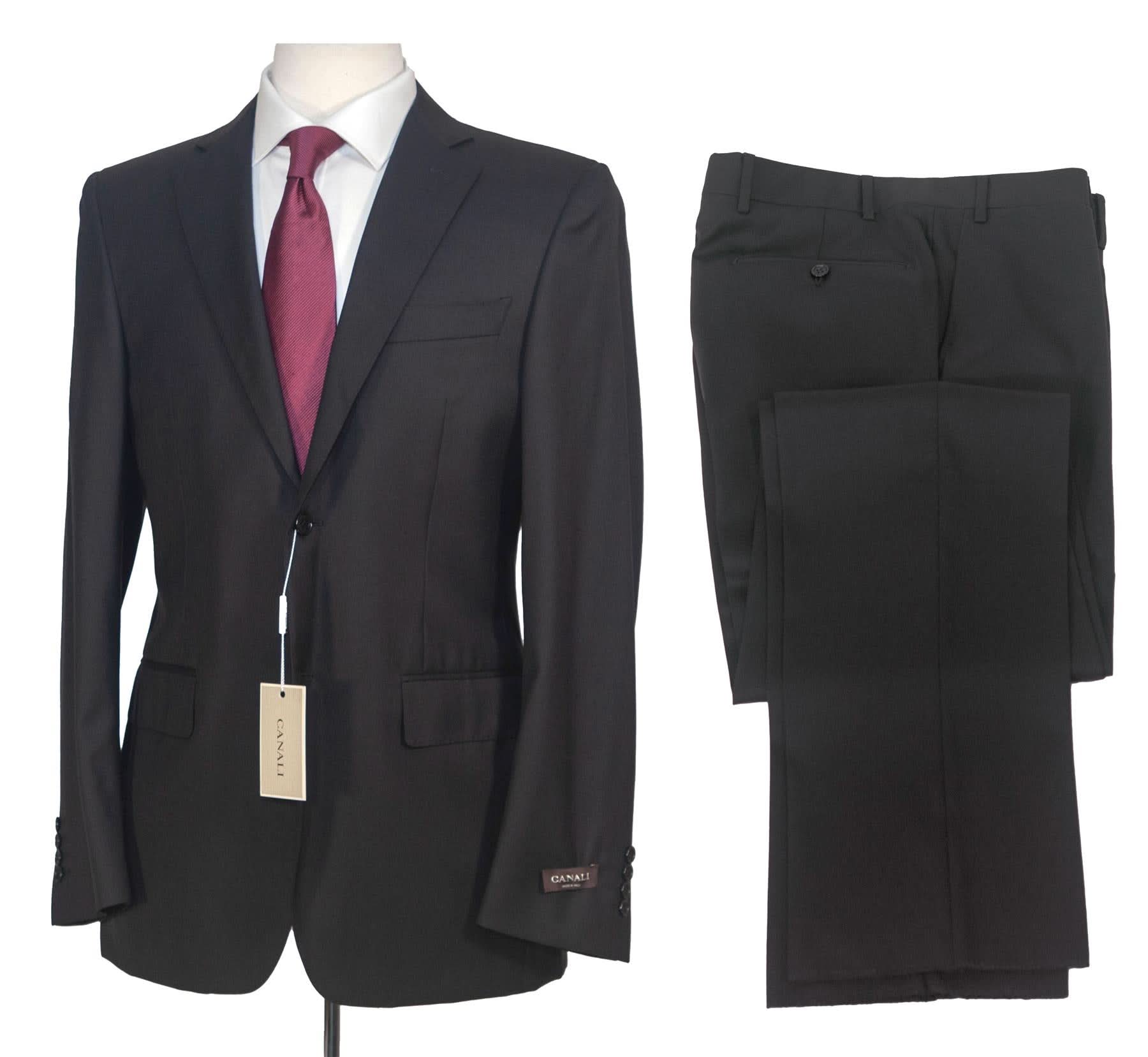 Canali Solid Black 100% Wool Suit 40R