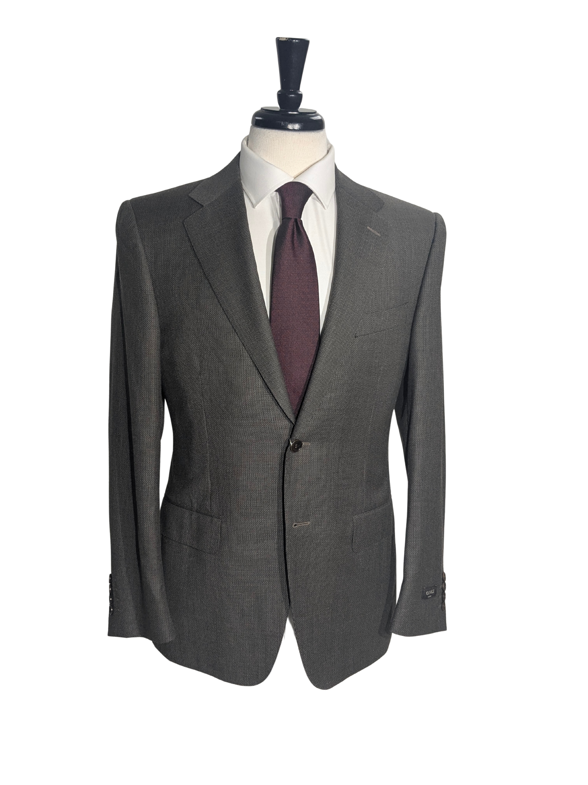 Canali Brown Basketweave 100% Wool 2 Button Suit 36R