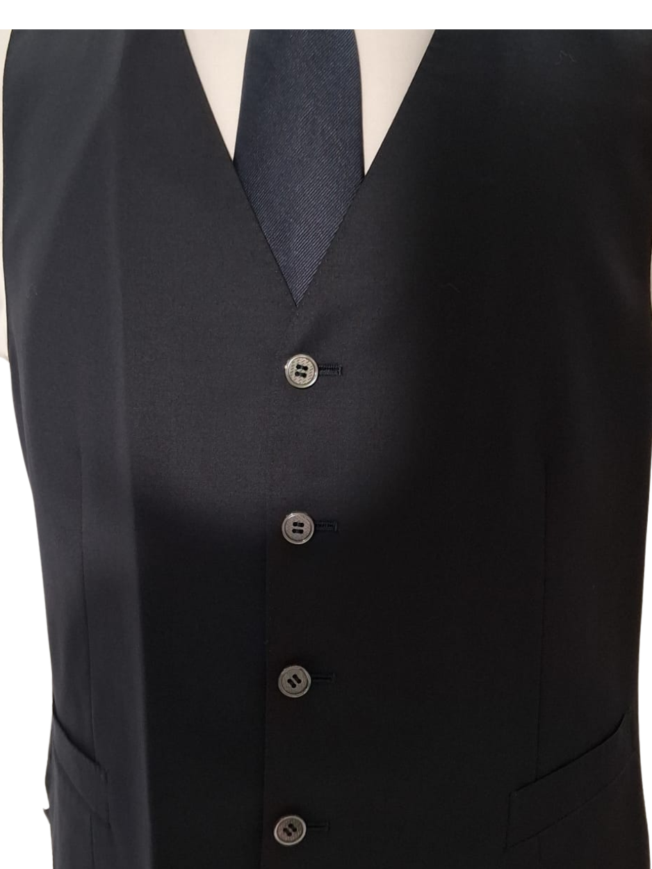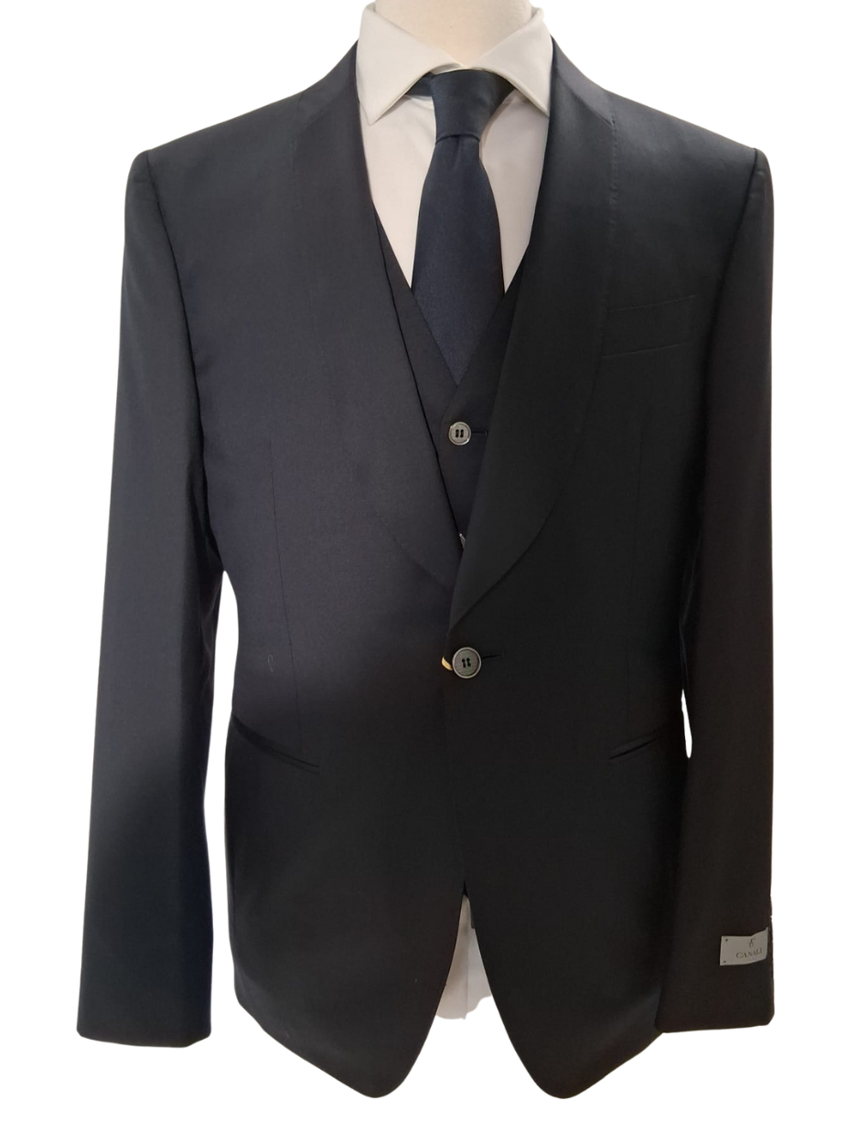 Canali Solid Black 3-piece 1-button 100% Wool Suit 42R