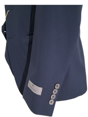 Refine your formal wardrobe with this Canali navy 3-piece suit, a pinnacle of Italian tailoring and understated luxury. Expertly crafted from 100% wool, this ensemble features a fully canvassed construction that enhances structure, ensures breathability, and maintains an elegant silhouette. The single-breasted jacket is adorned with mother-of-pearl buttons and showcases refined welt pockets and a single rear vent.