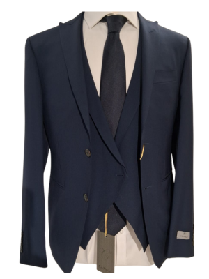 Canali Solid Navy 3-piece 100% Wool Suit 38R