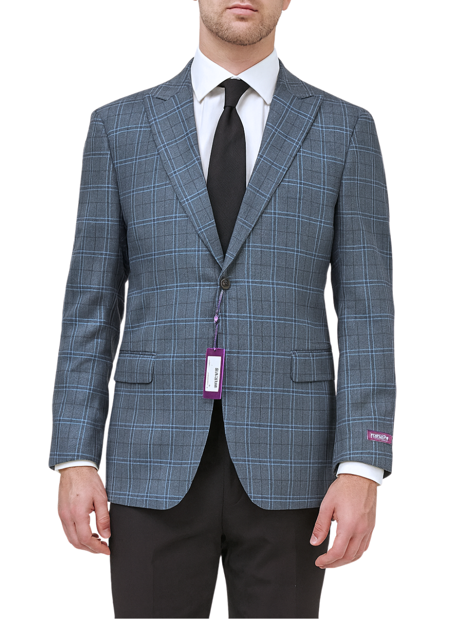 Canuti By Steven Land Light Blue Plaid Modern Fit 2 Button Blazer Sportcoat