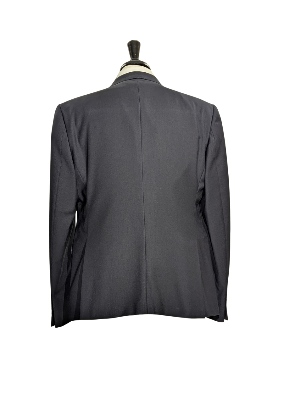 Armani Collezioni M-Line Solid Black Notch Lapel Modern Fit 2 Button Wool Suit 46R