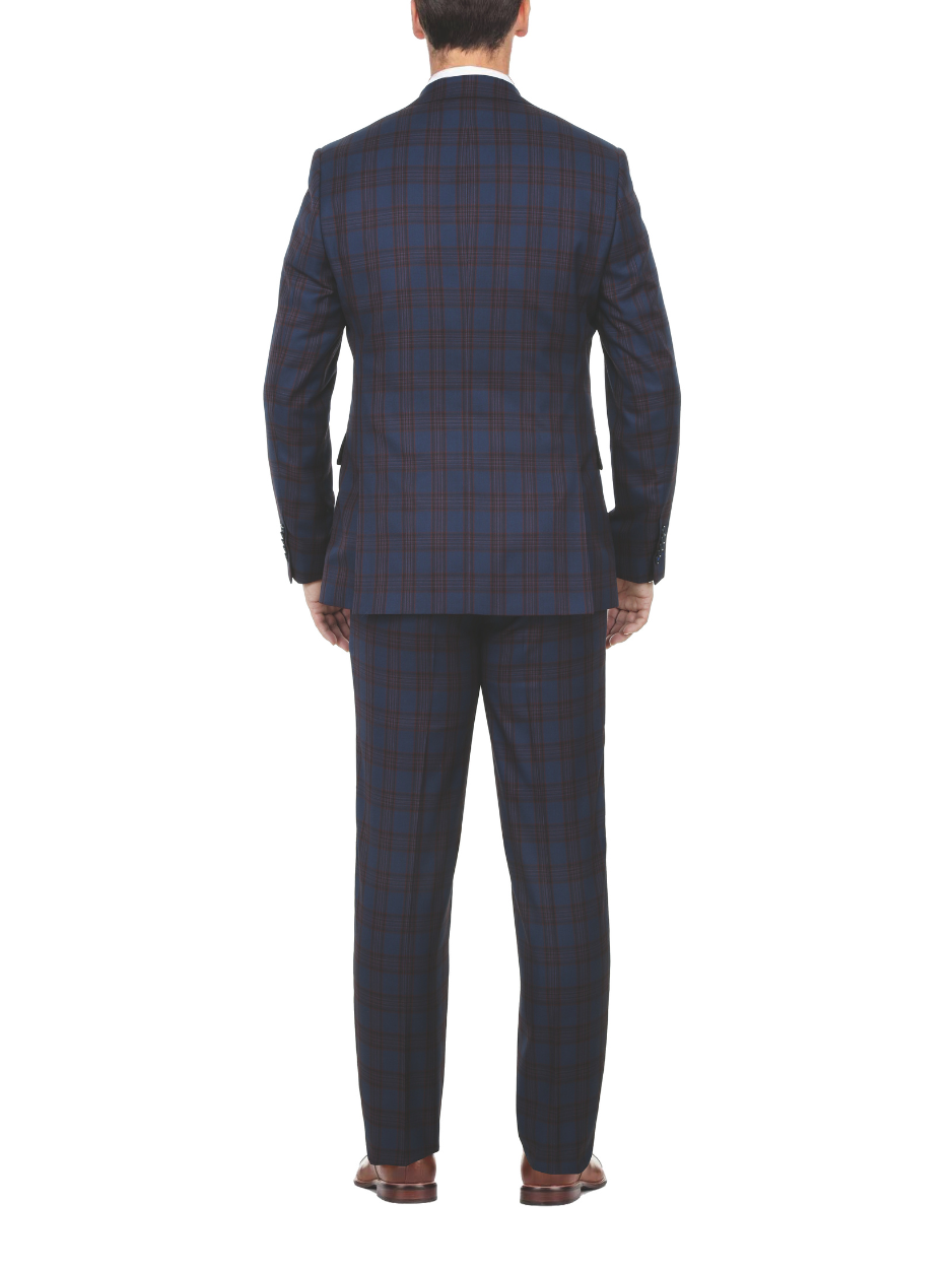 English Laundry Glen Plaid Blue & Rust Slim Fit Notch Lapel 2 Button Stretch Suit