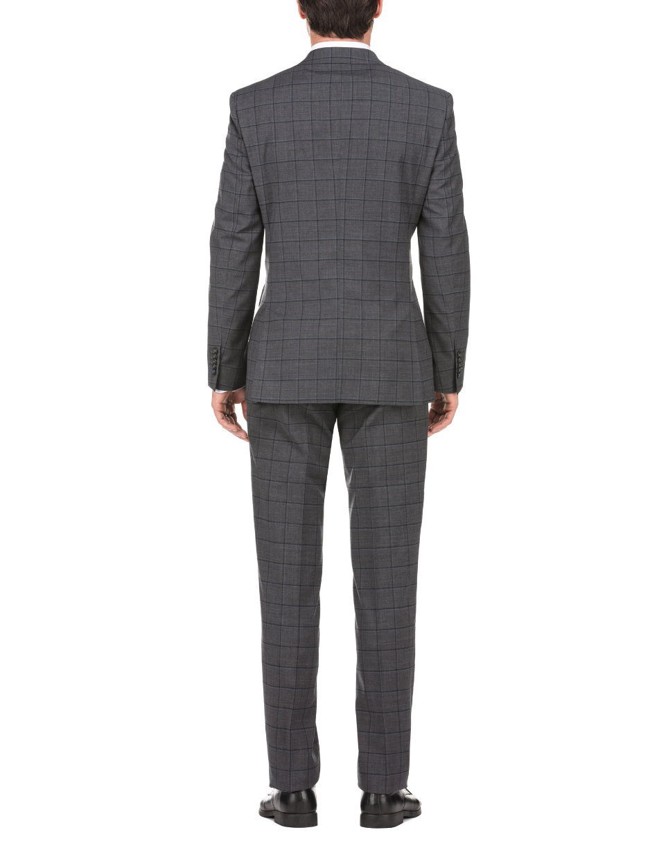 English Laundry Grid Check Charcoal Gray Slim Fit Notch Lapel Wool Stretch 2 Button Suit