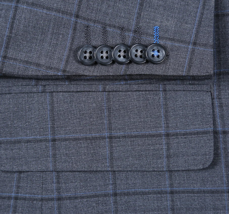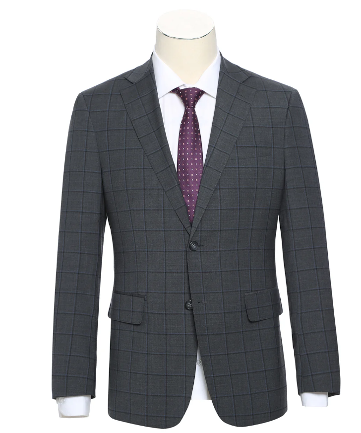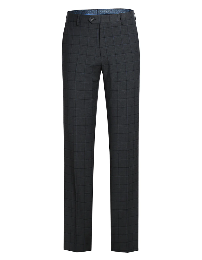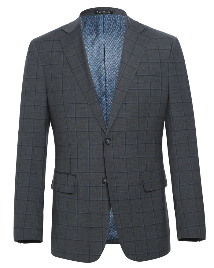 Looking for a finely tailored notch lapel suit at an unbeatable price? You’ve found it. This English Laundry charcoal gray grid check suit is crafted from a premium blend of wool, polyester and Lycra, offering structure, stretch, and breathability for all-day comfort. Designed in a slim fit, it delivers a sharp, modern silhouette perfect for weddings, special events, or standout office wear.