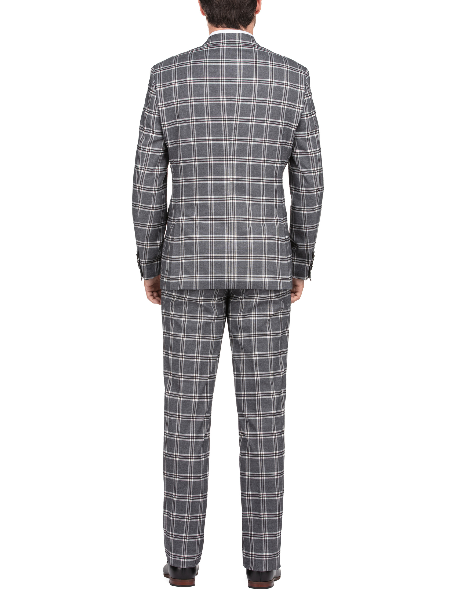 English Laundry Windowpane Check Gray Slim Fit Peak Lapel Stretch 2 Button Suit
