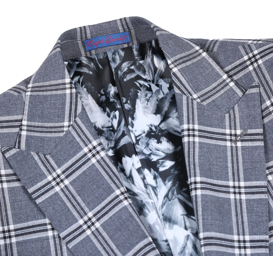 Looking for a finely tailored peak lapel suit at an unbeatable price? You’ve found it. This English Laundry windowpane check gray suit is crafted from a premium blend of polyester, rayon and spandex, offering both structure and stretch for all-day comfort. Designed in a slim fit, it delivers a sharp, modern silhouette perfect for weddings, special events, or standout office wear.