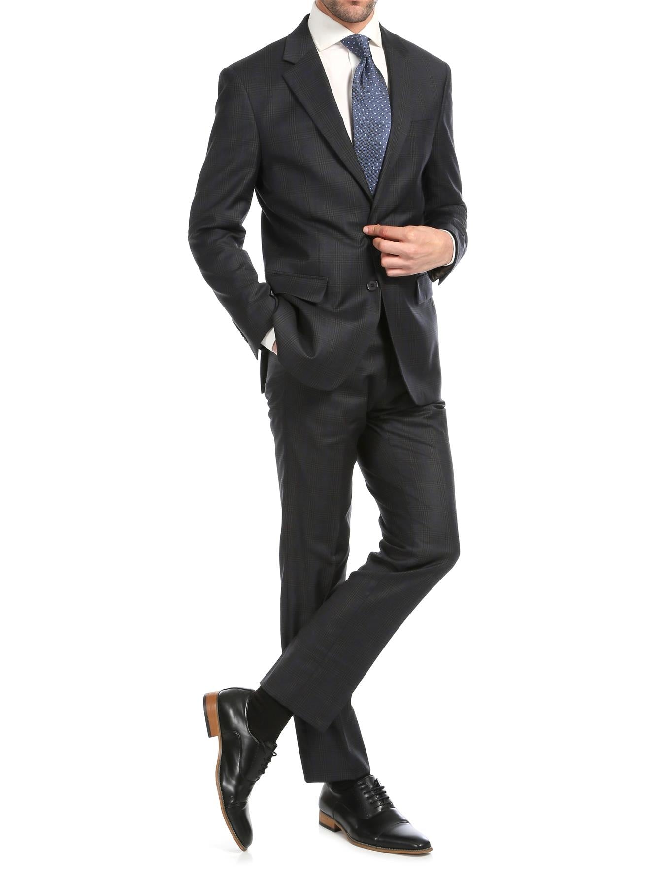 A finely made wool blend suit at a reasonable price? You found it. This classic fit gray plaid two button wool blend mens suit is made from luxury wool fabric that drapes superbly across the body. The classic fit is timeless – and comfortable. It’s the perfect suit for wedding parties and groomsmen, as well as for year-round business wear.