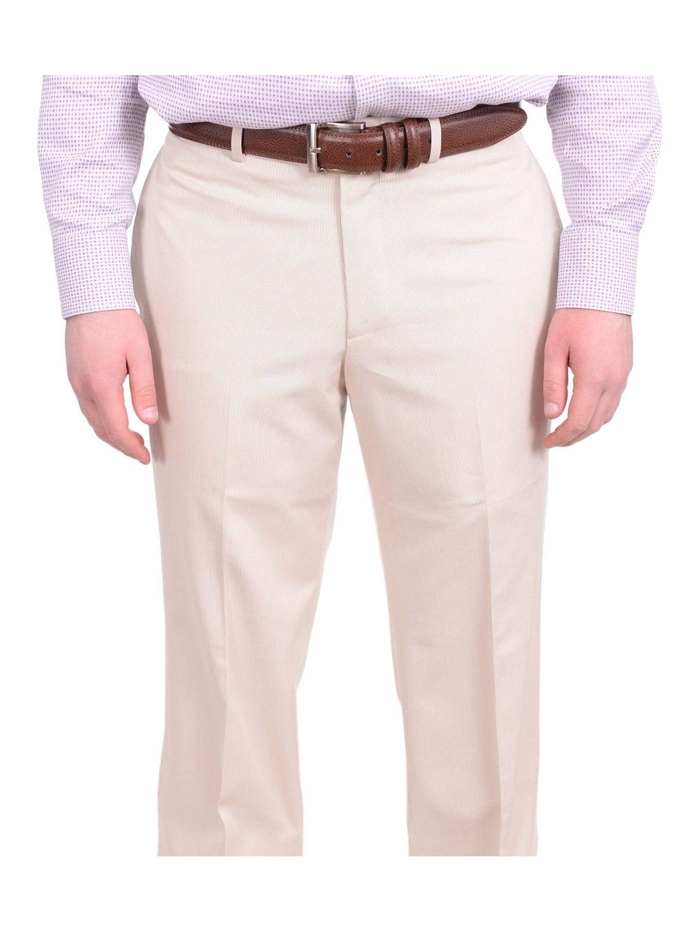 Geoffrey Beene Classic Fit Tan Corded Flat Front Cotton Blend Dress Pants