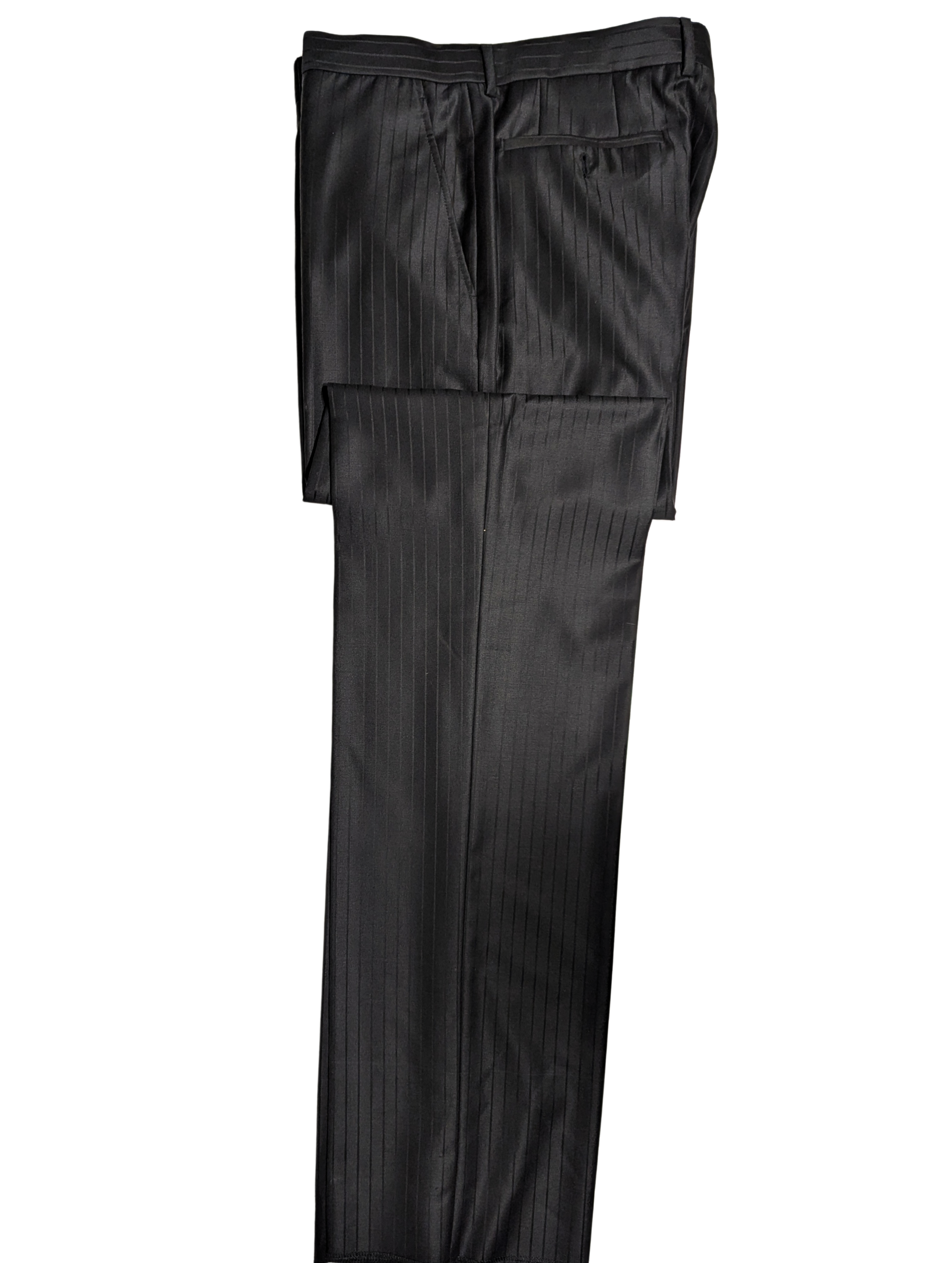 This Giorgio Armani suit in Black Pinstriped wool blends classic tailoring with modern elegance. Designed in a modern fit, it features a peak lapel, and a One button closure. A sharp choice for business or formal wear.