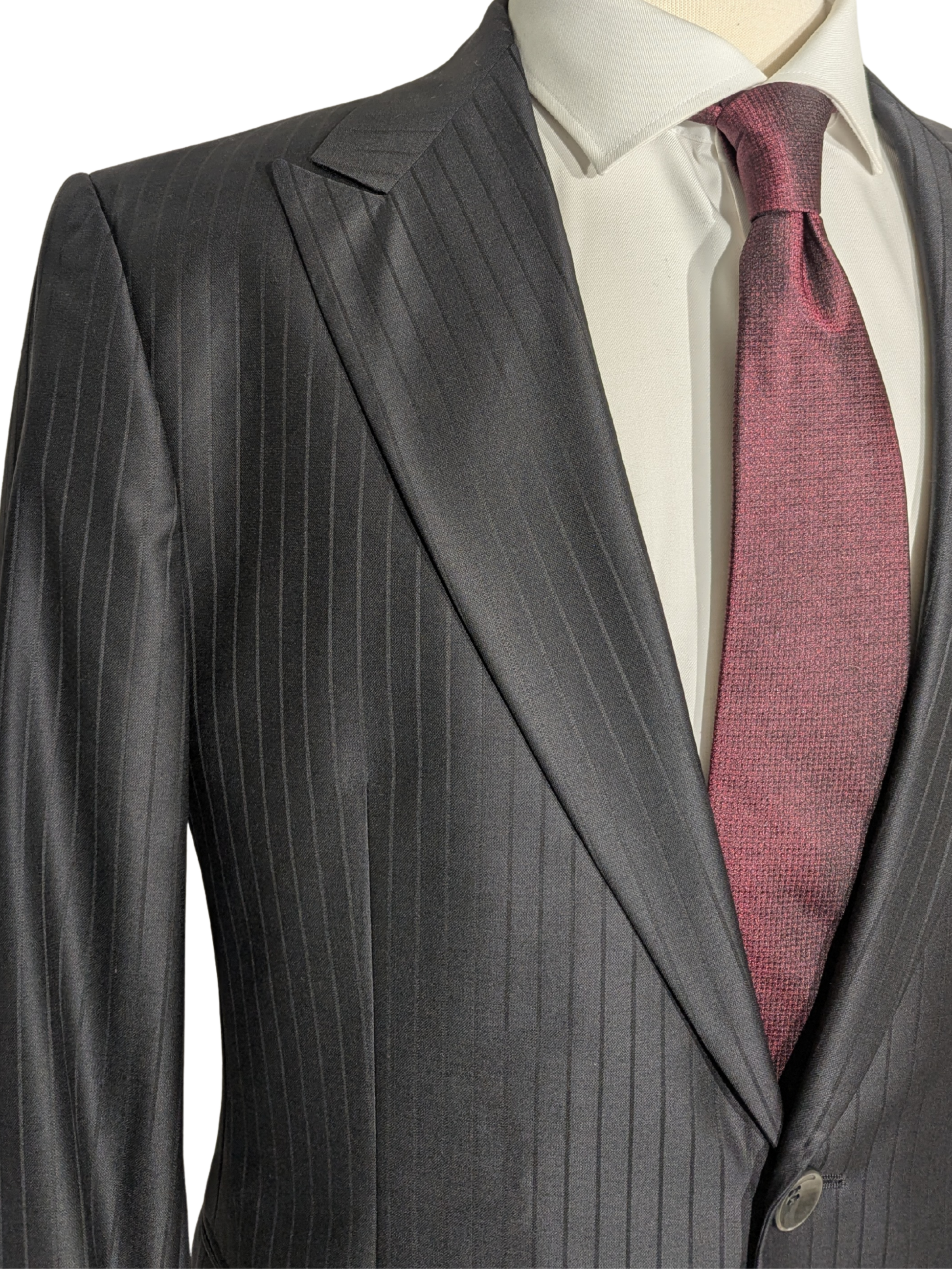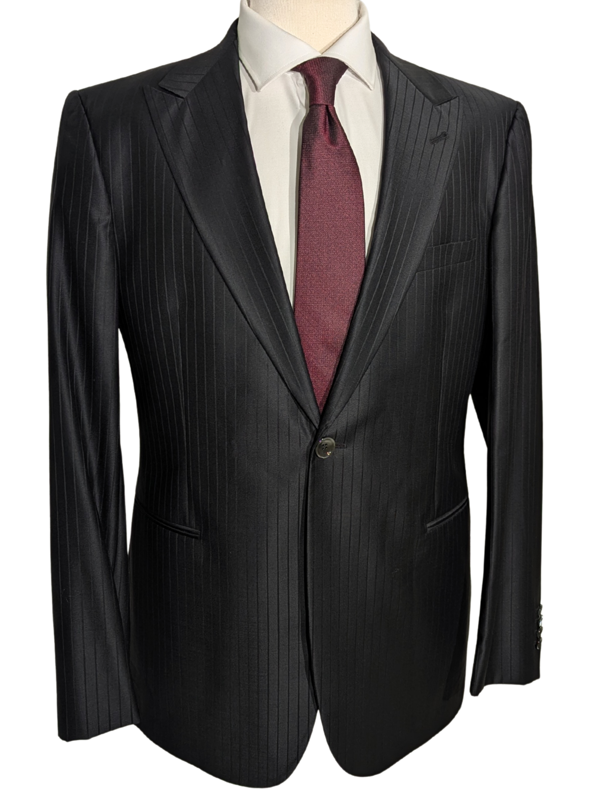 Giorgio Armani Black Pinstripe One-Button Peak Lapel Wool Suit 44R