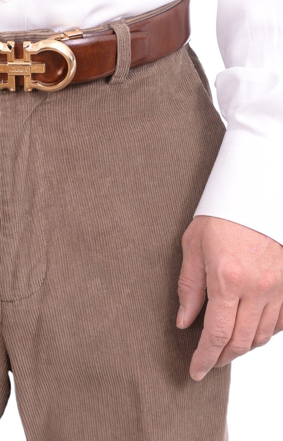 Haggar Regular Fit Khaki Brown Corduroy Flat Front Cotton Washable Casual Pant