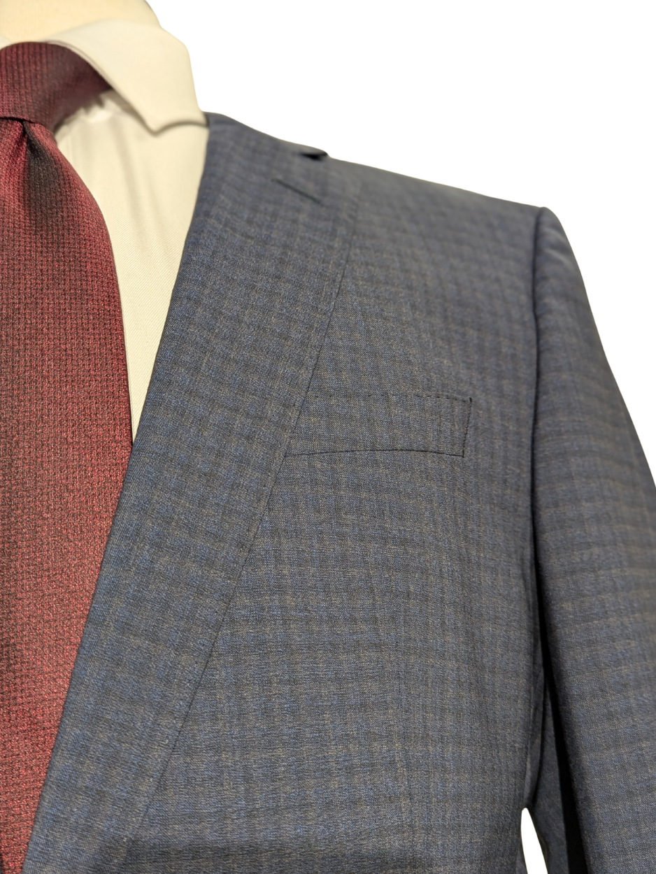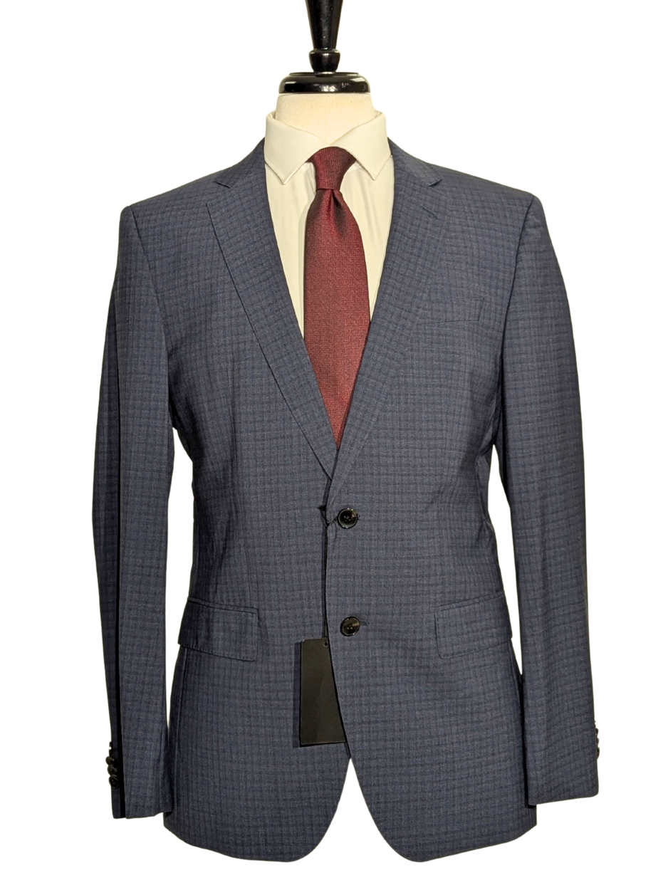 Hugo Boss Lanificio Blue and Gray Tonal Check Slim Fit Notch Lapels Wool 2-Button Suit - 40R