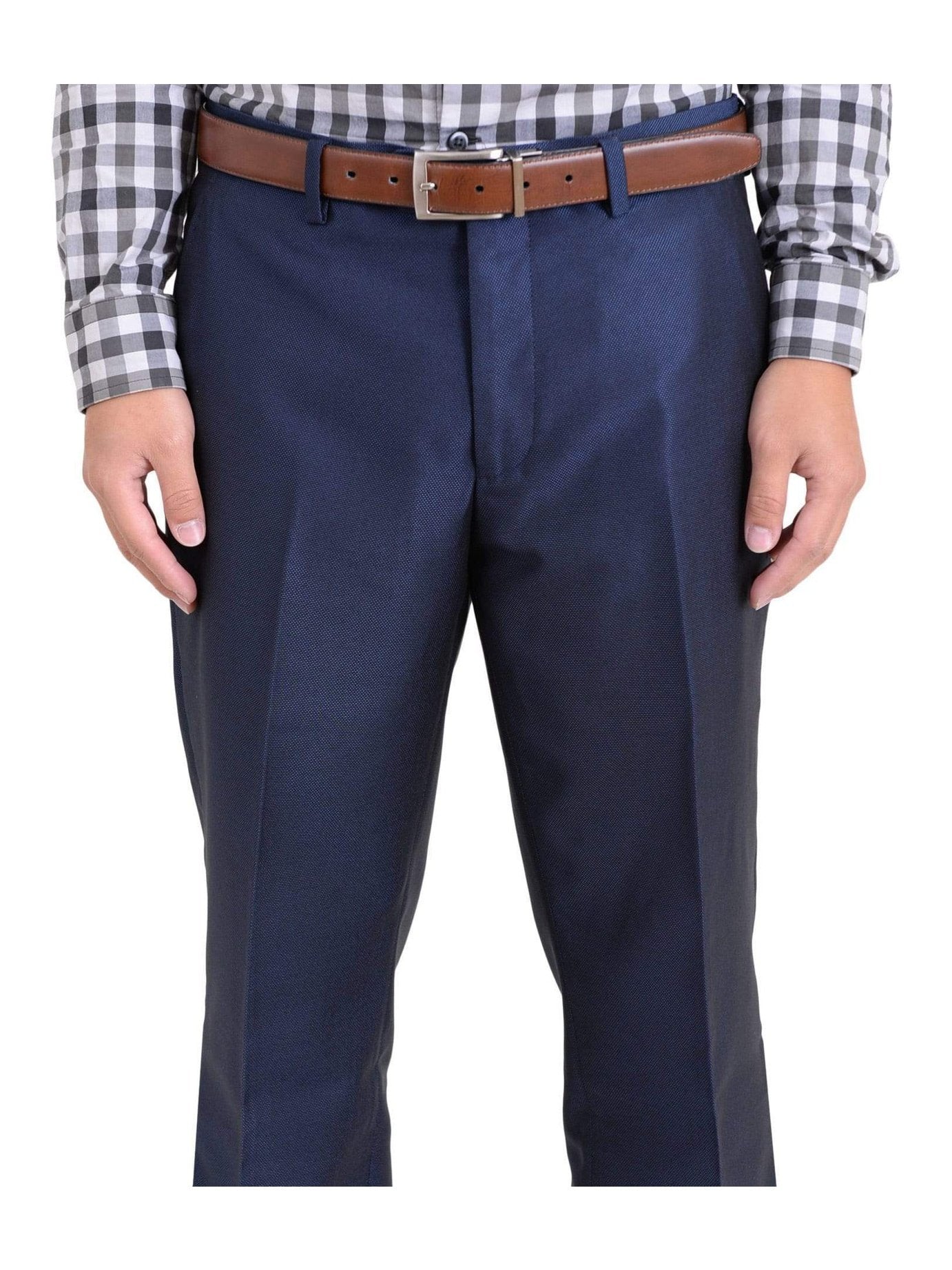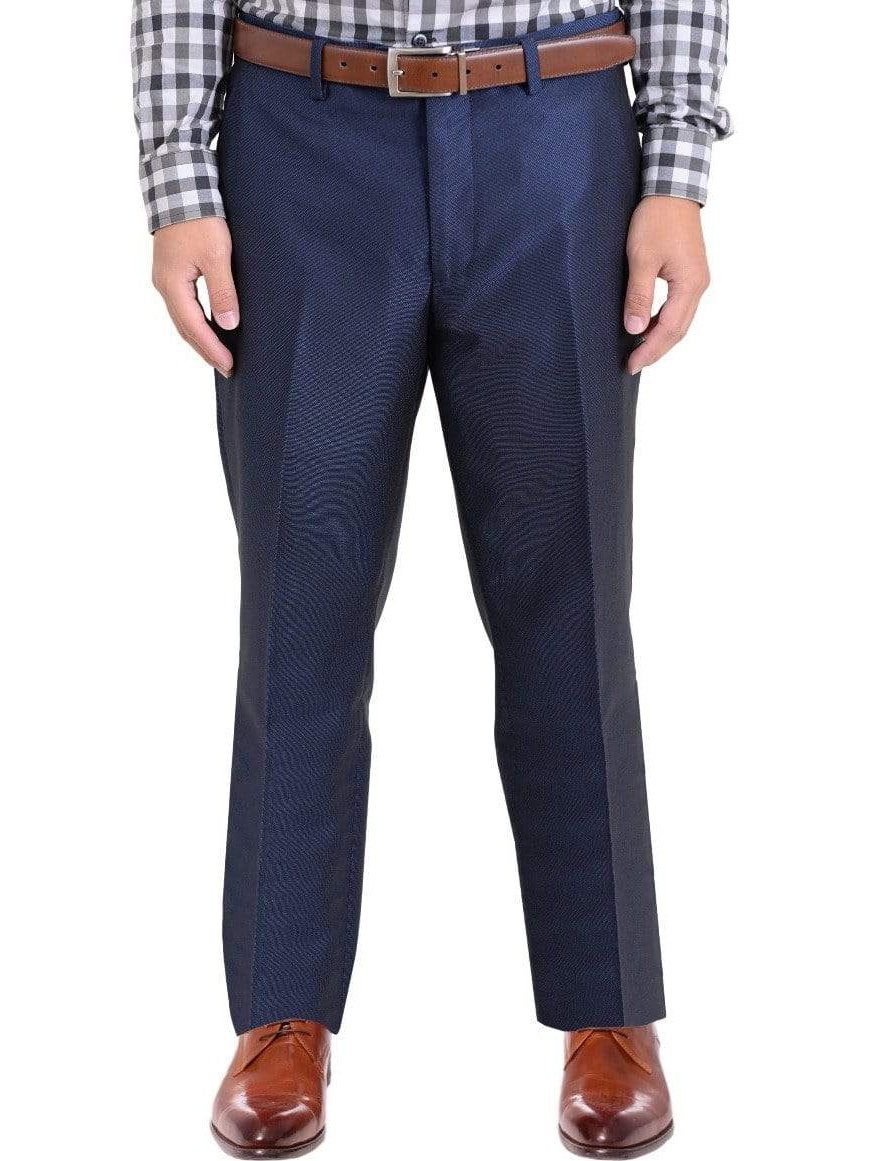 These flat front men's from Ideal feature a stylish slim fit. Made with a quality 100% wool fabric, and in a versatile blue color, these will quickly become your go-to pair of dress pants. This pair will match countless dress shirts and sportcoats, offering your wardrobe an updated look. Inseam is unfinished, allowing you to have your tailor hem them to your exact specifications.