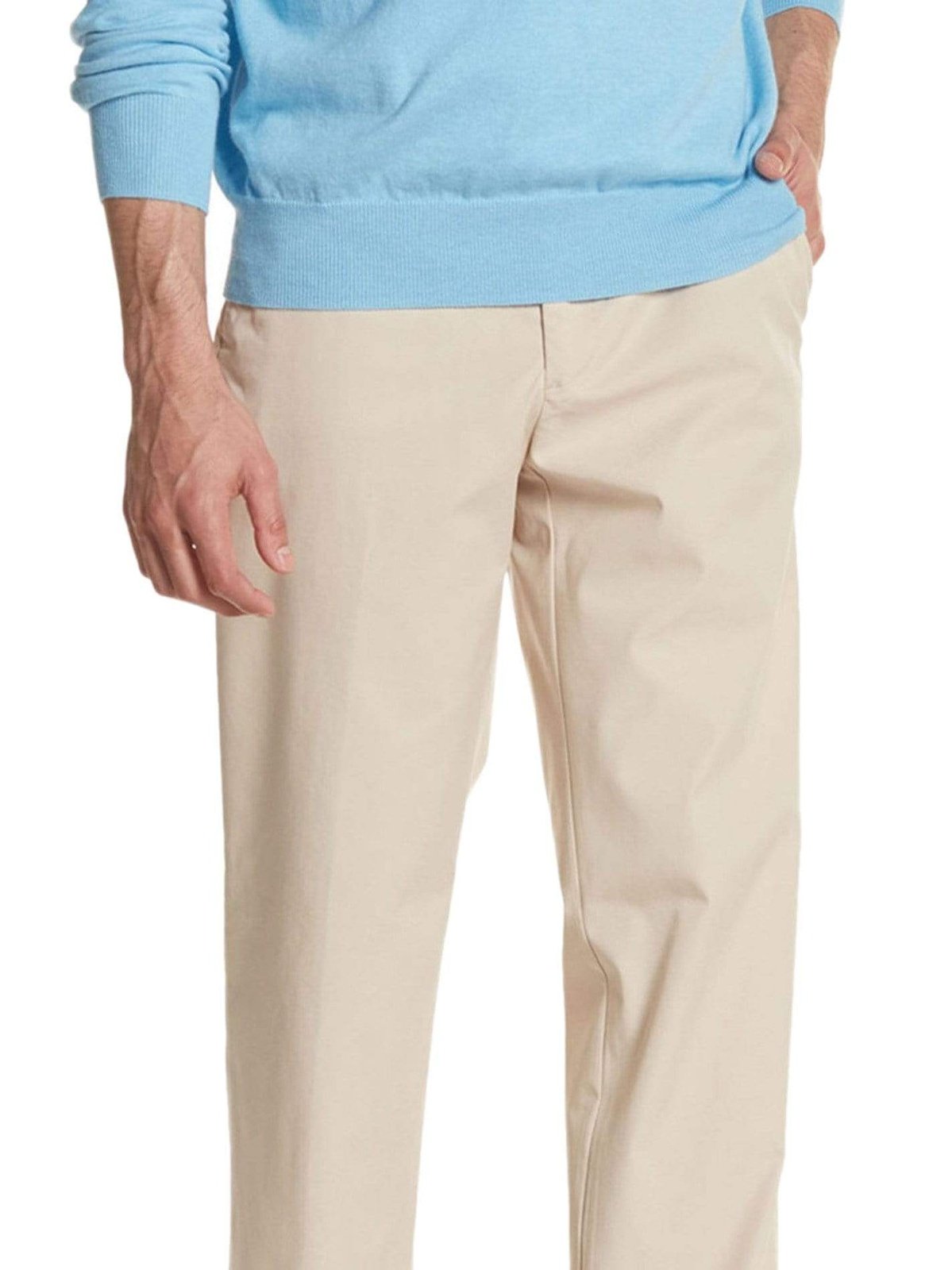 Lauren Ralp Lauren Regular Fit Solid Tan Flat Front Cotton Dress Pants