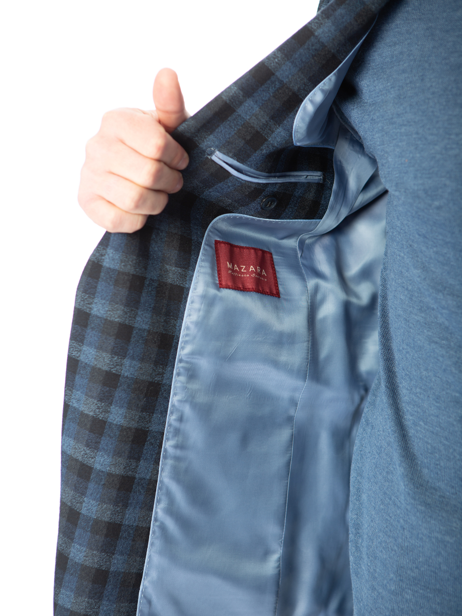 Sartoria Mazara Mens Classic Fit Black & Blue Check 100% Wool Blazer Sportcoat