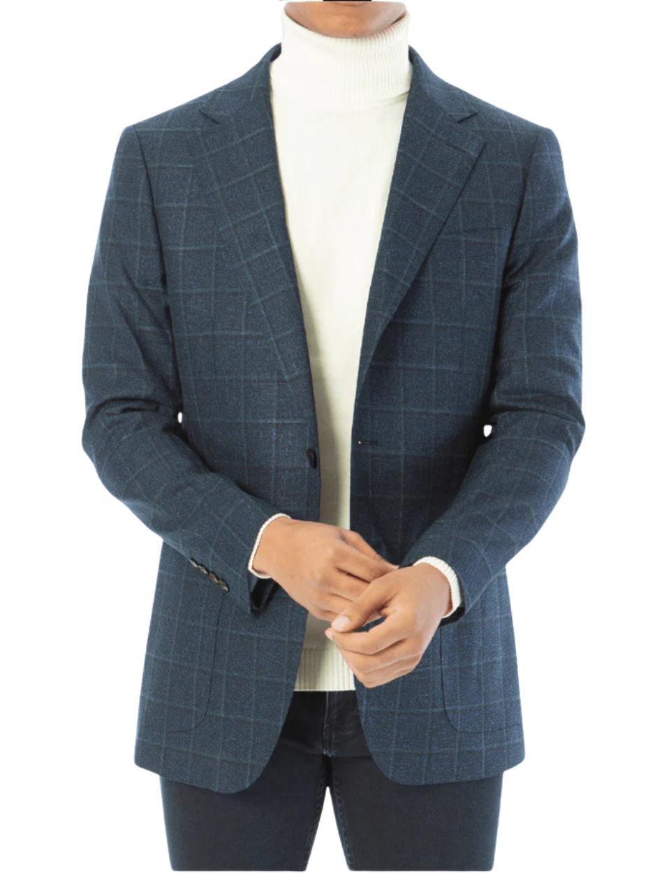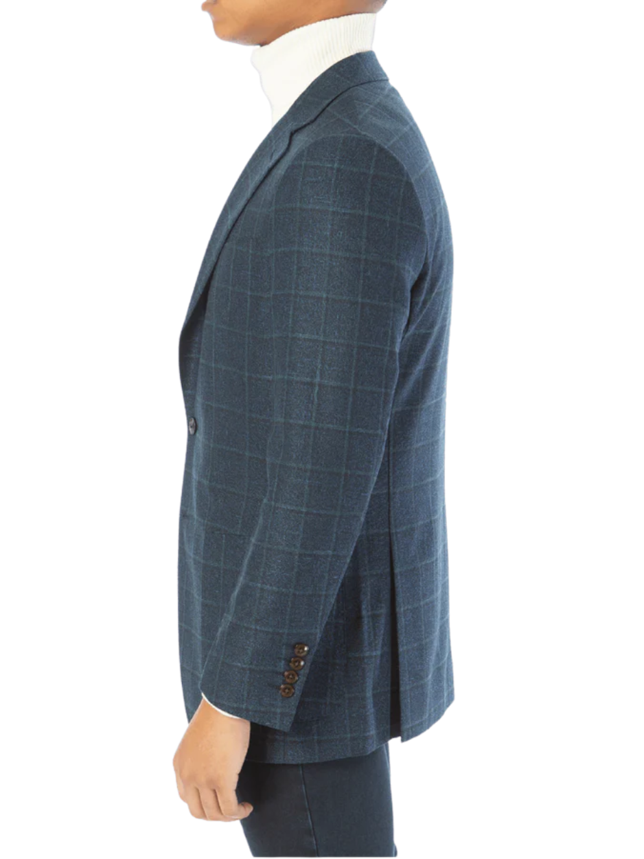 Sartoria Mazara Mens Classic Fit Blue With Green Check 2 Button Blazer Sportcoat